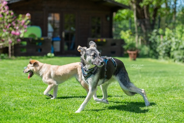 Aber dann ist da noch die andere Kalina. Die, die vor allem große Angst hat. Die, die nachdem der Weg unters Bett verbaut wurde, am liebsten in ihrem Zimmerchen im Körbchen liegt. Und die Kalina, die nach wie vor sich draußen im Garten, wenn sie frei laufen darf, nicht vom Pflegefrauchen anfassen lässt, die es nicht schafft, von sich aus den letzten Schritt zu machen. Es braucht immer! eine lange Schleppleine, um dort an sie heranzukommen.