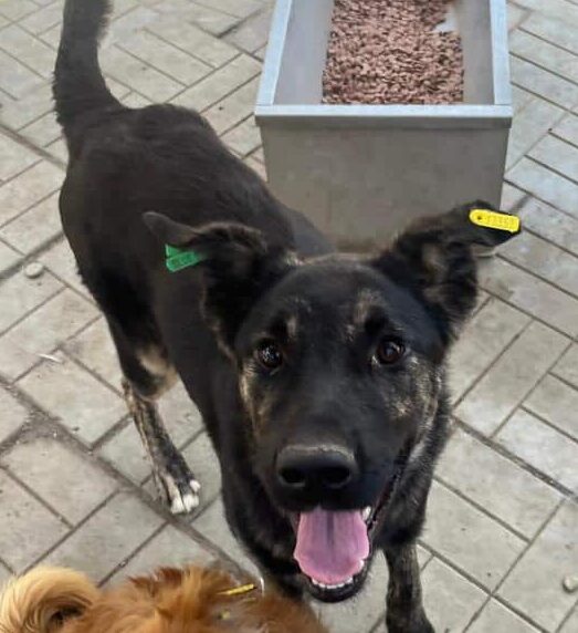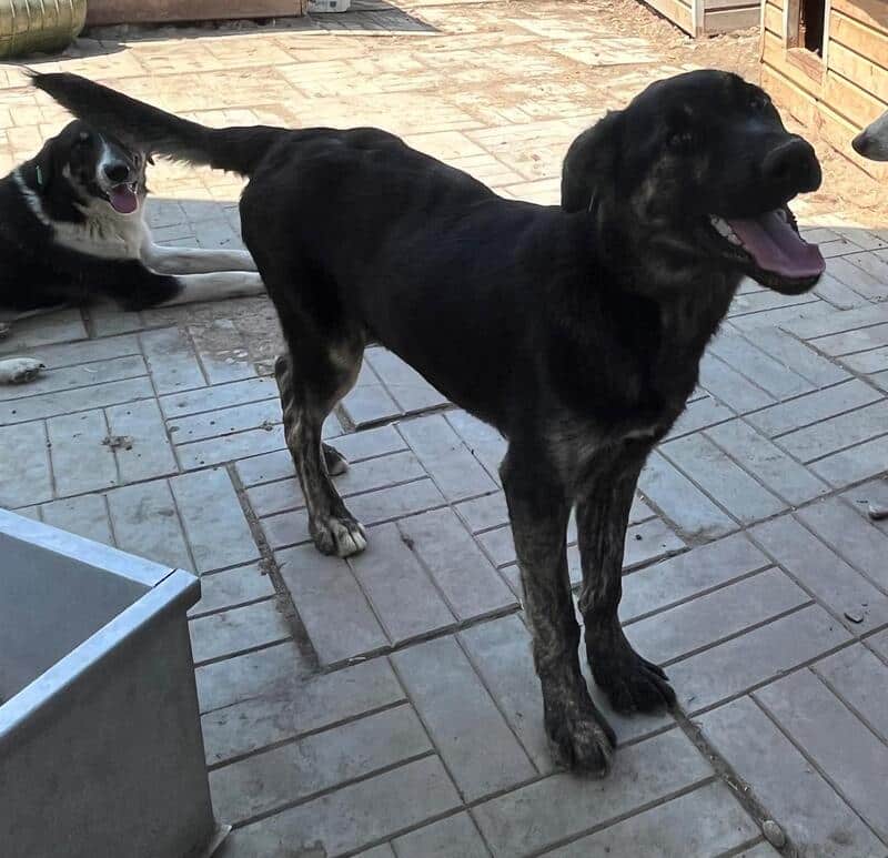 Dieser Rüde lebt in einem gemischten Rudel im Kennel zusammen und scheint verträglich zu sein.