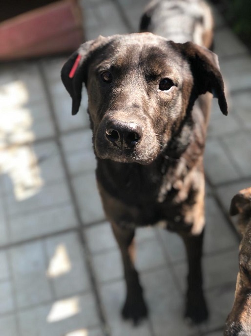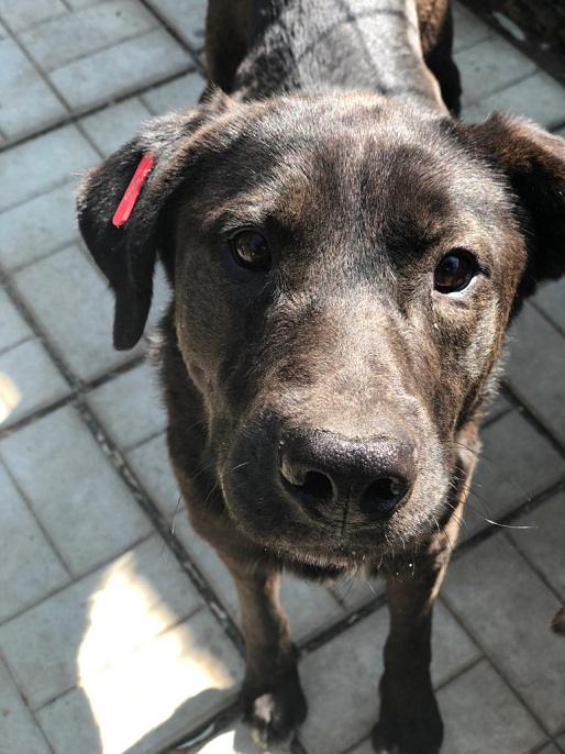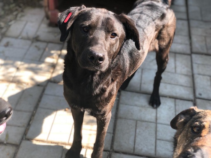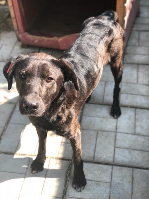 Rüde geb. ca. 2019 Größe: ca. 55-60cm Labrador-Mix, dunkelbraun, zu dünn (08/21)