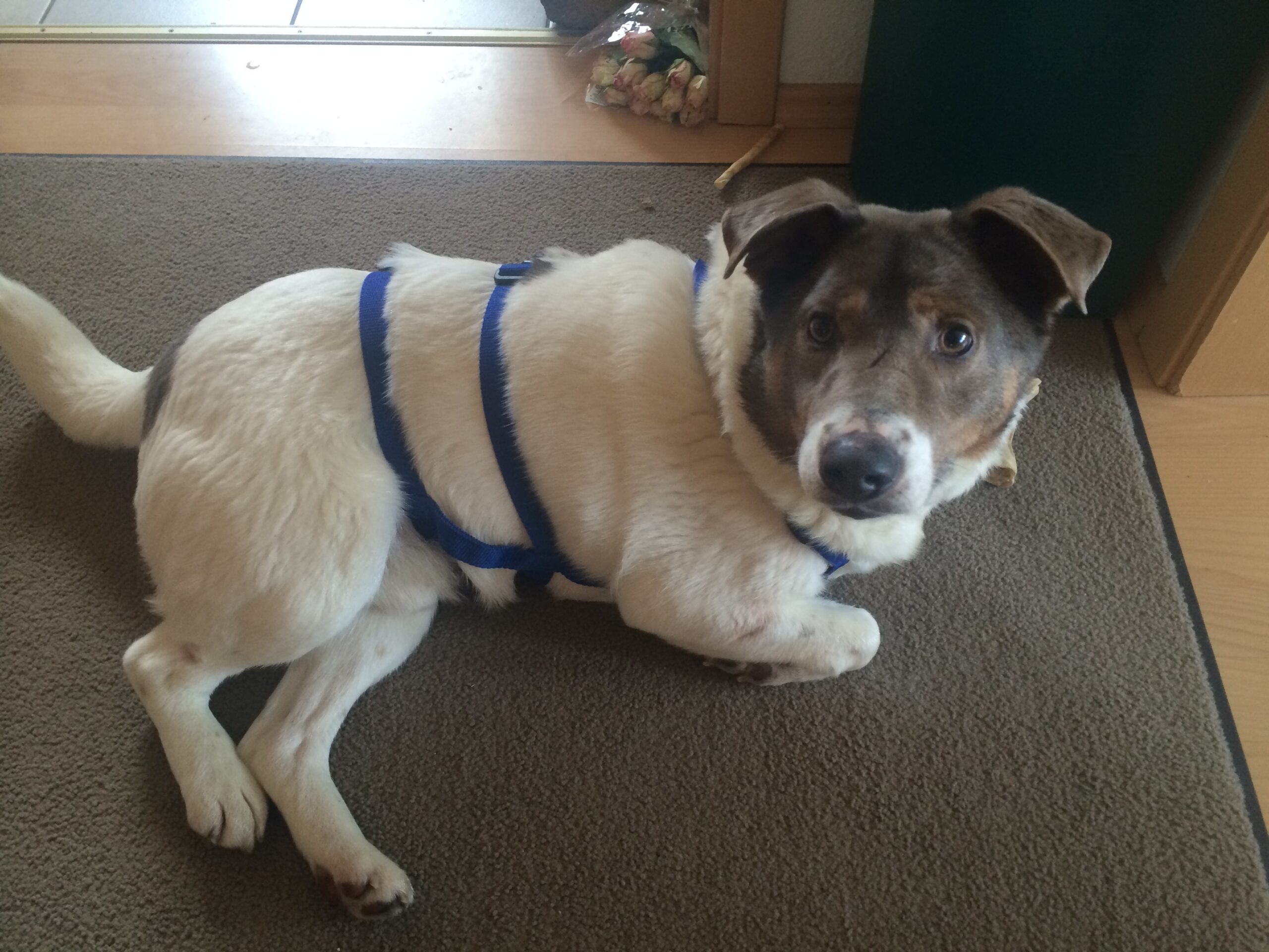 Kamelo ist stubenrein, läuft gut an der Leine und kennt die Grundkommandos. Er ist schlau, beobachtet viel und zeigt sich als sehr anpassungs- und lernfähiger Hund.