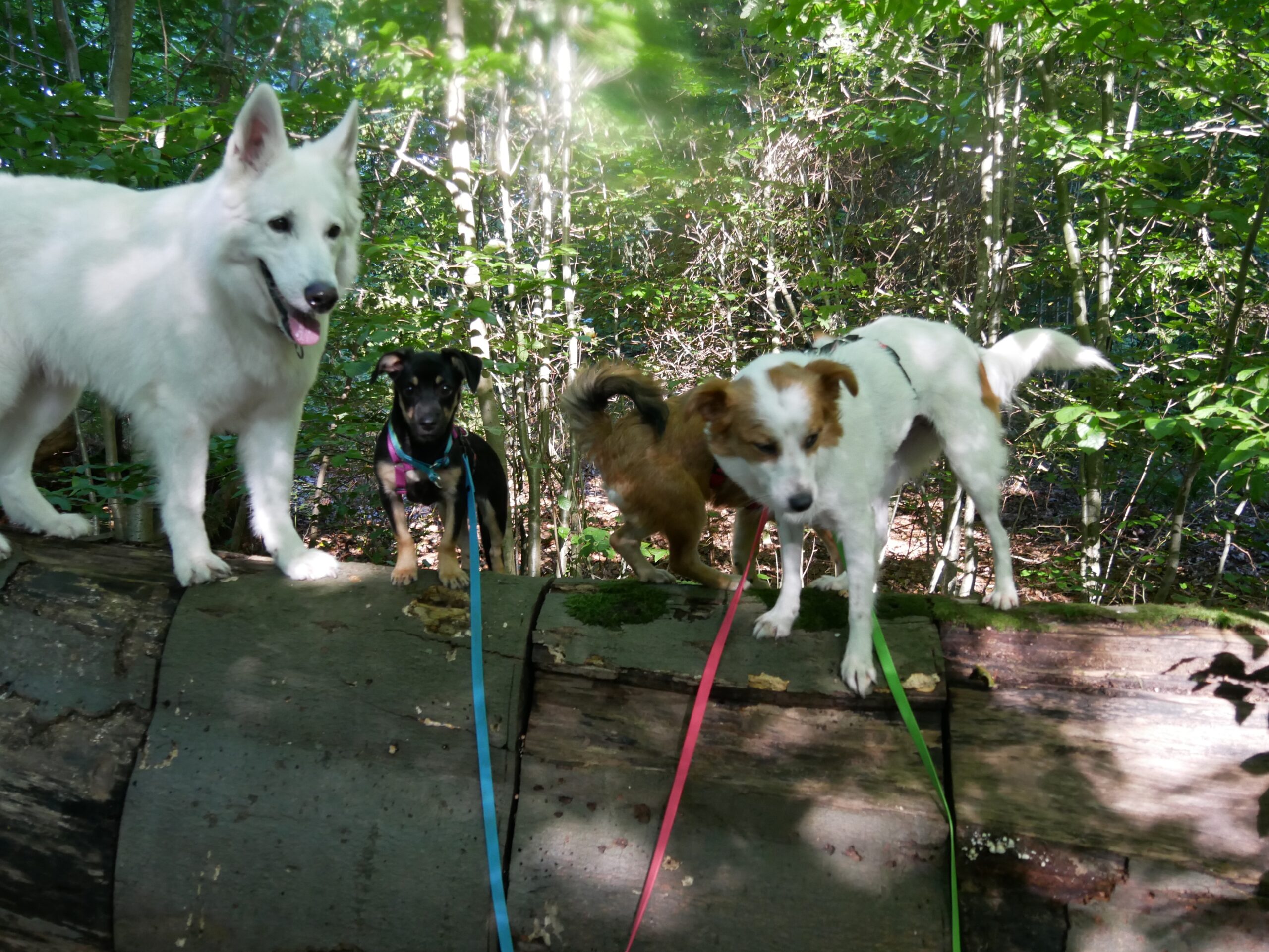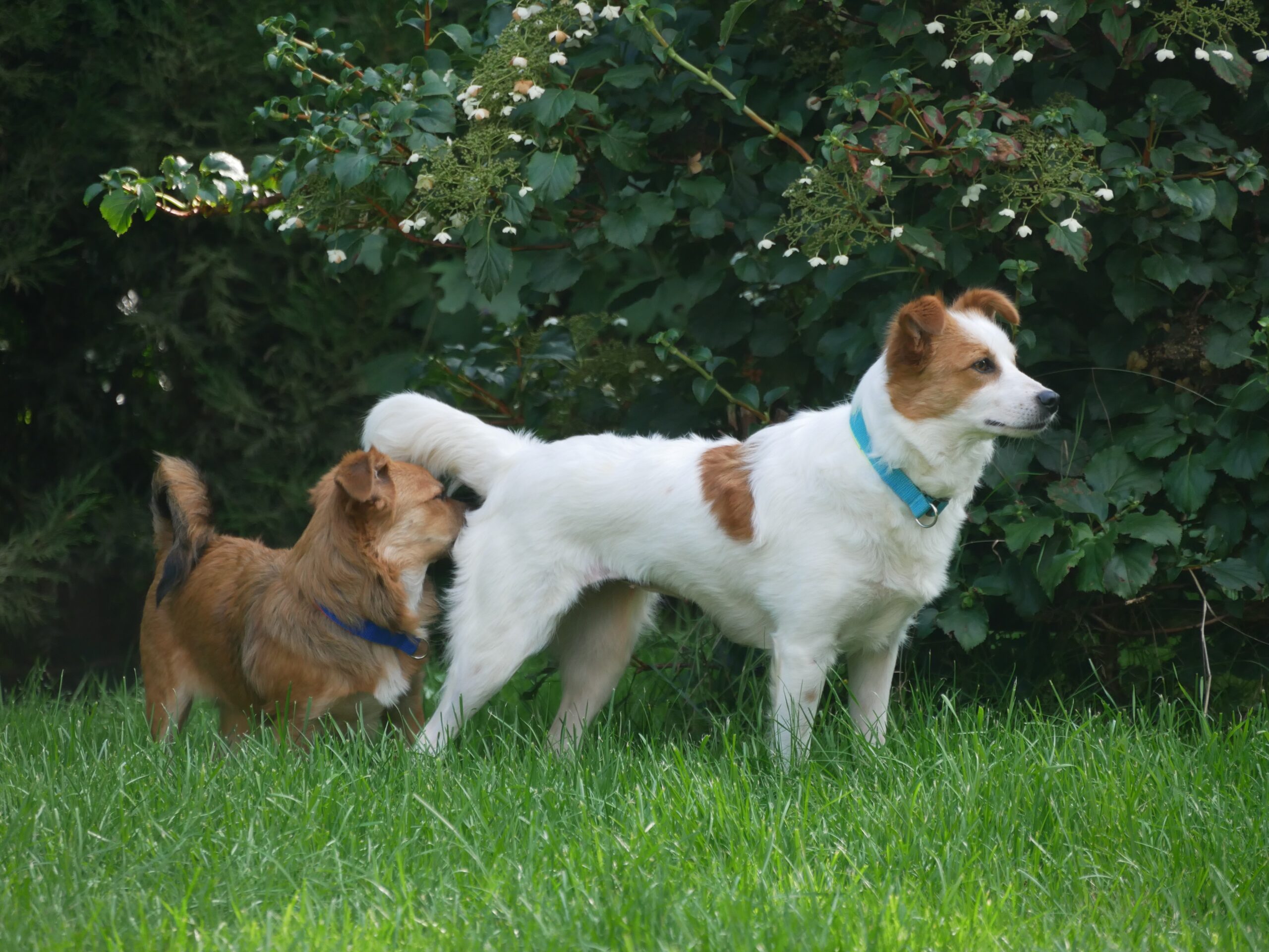 Mit Artgenossen kommt sie gut klar und die Katzen mag sie auch.