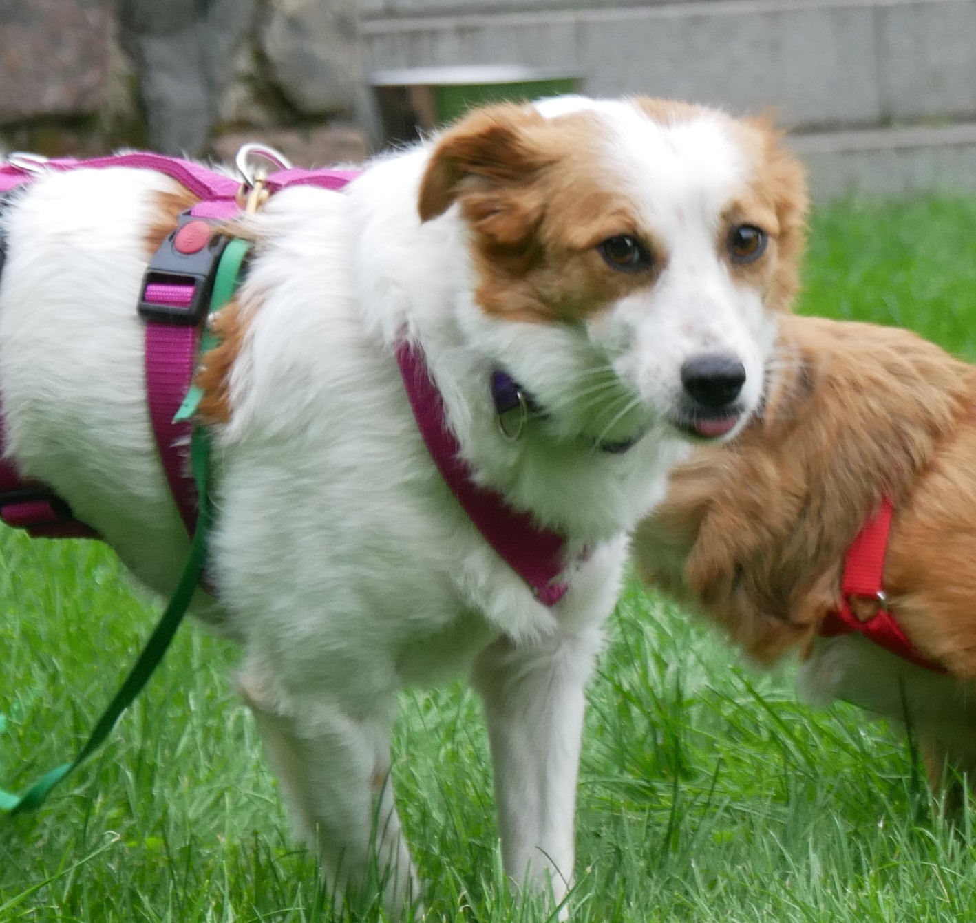 Sie geht gerne Gassi, läuft prima an der Leine. Einzig vom Grundstück runter oder auch ins Auto hinein sind noch nicht so ihre Lieblingssituationen. Im Auto mitfahren ist kein Problem.