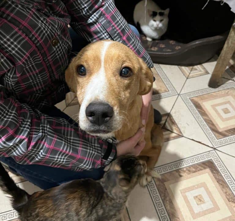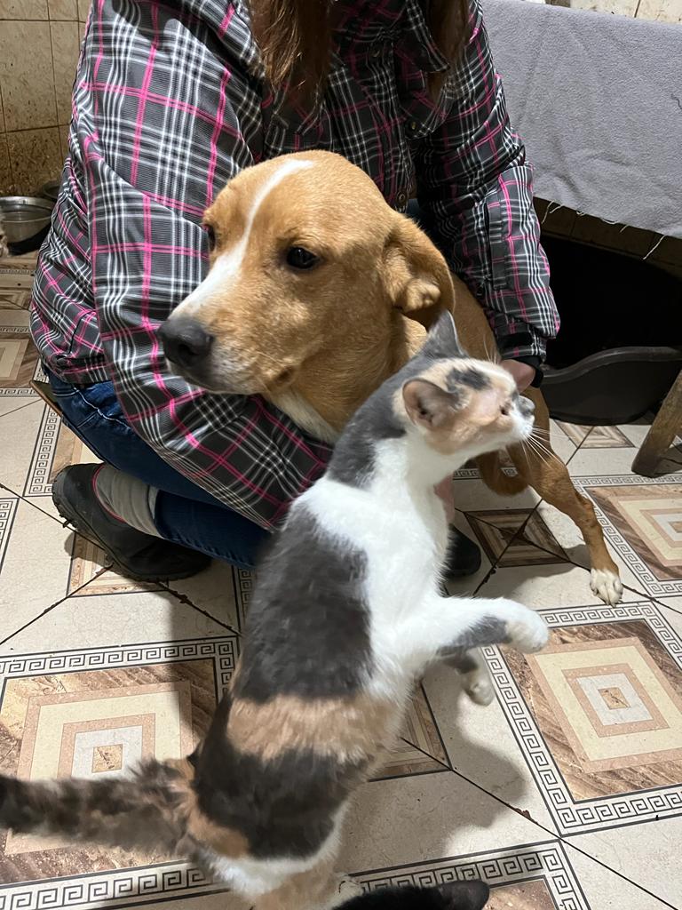 KANGA sitzt aktuell im Haus in einem Käfig. Wir haben sie kurz heraus genommen. Sie ist sehr zutraulich und freute sich sehr über die Streicheleinheiten. Mit den vielen Katzen in diesem Zimmer zeigte sie sich verträglich.