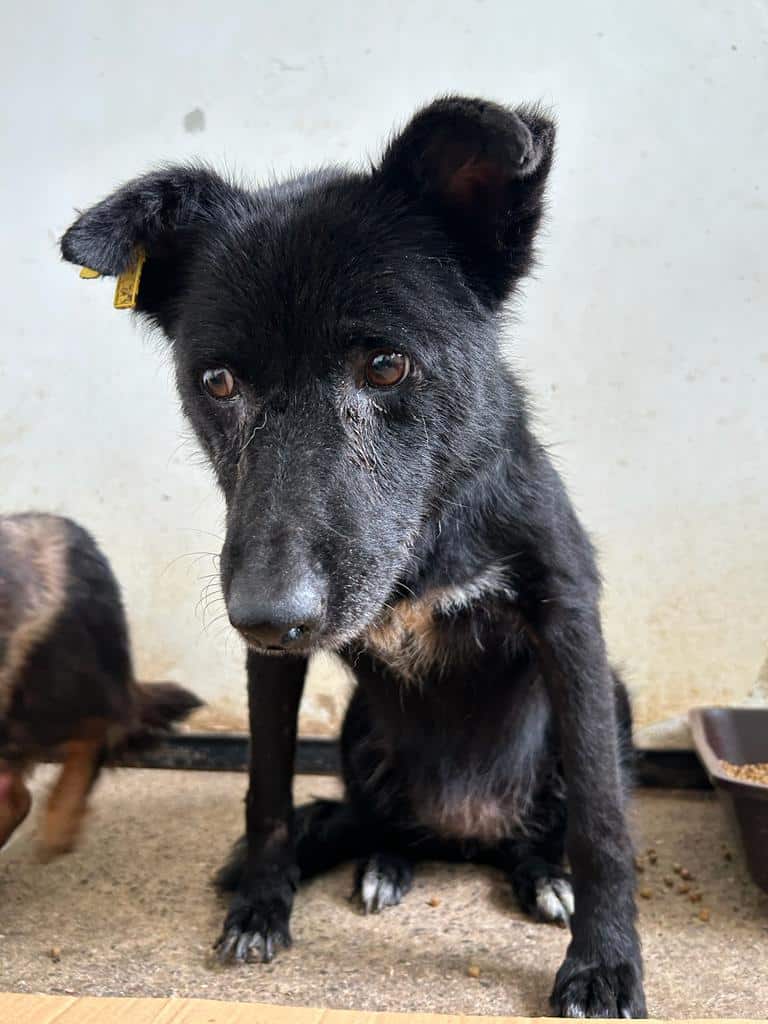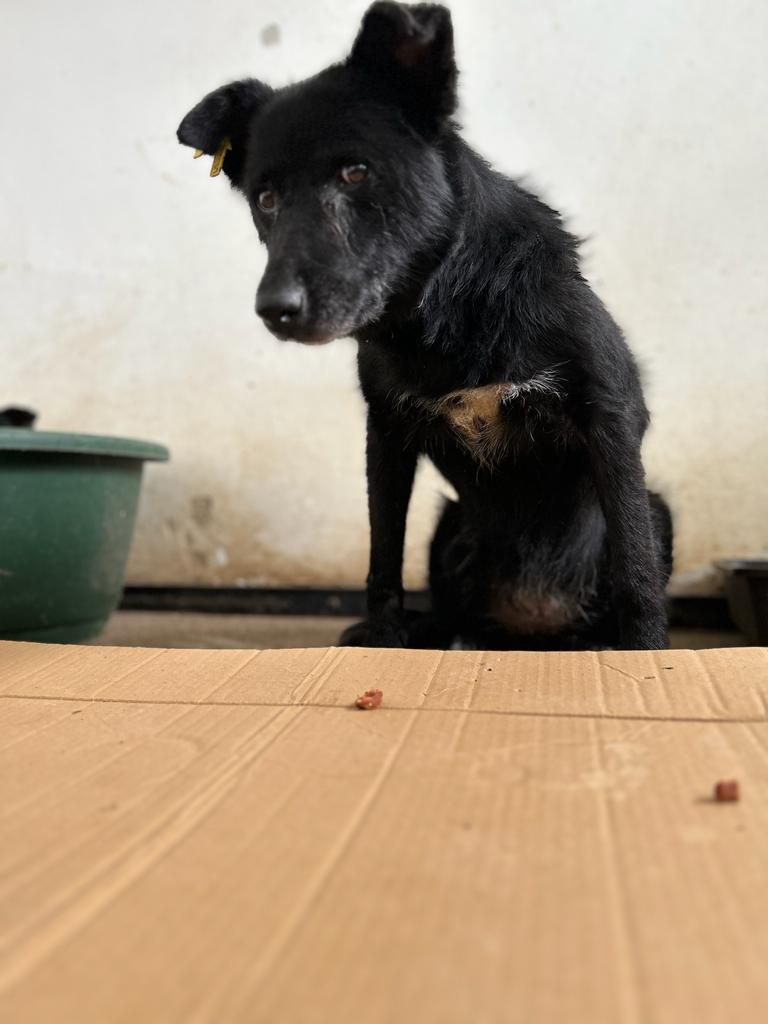 Wir konnten die arme Hündin vorsichtig anfassen, sie wich aber nach Möglichkeit zurück. Dennoch war sie freundlich und interessiert.