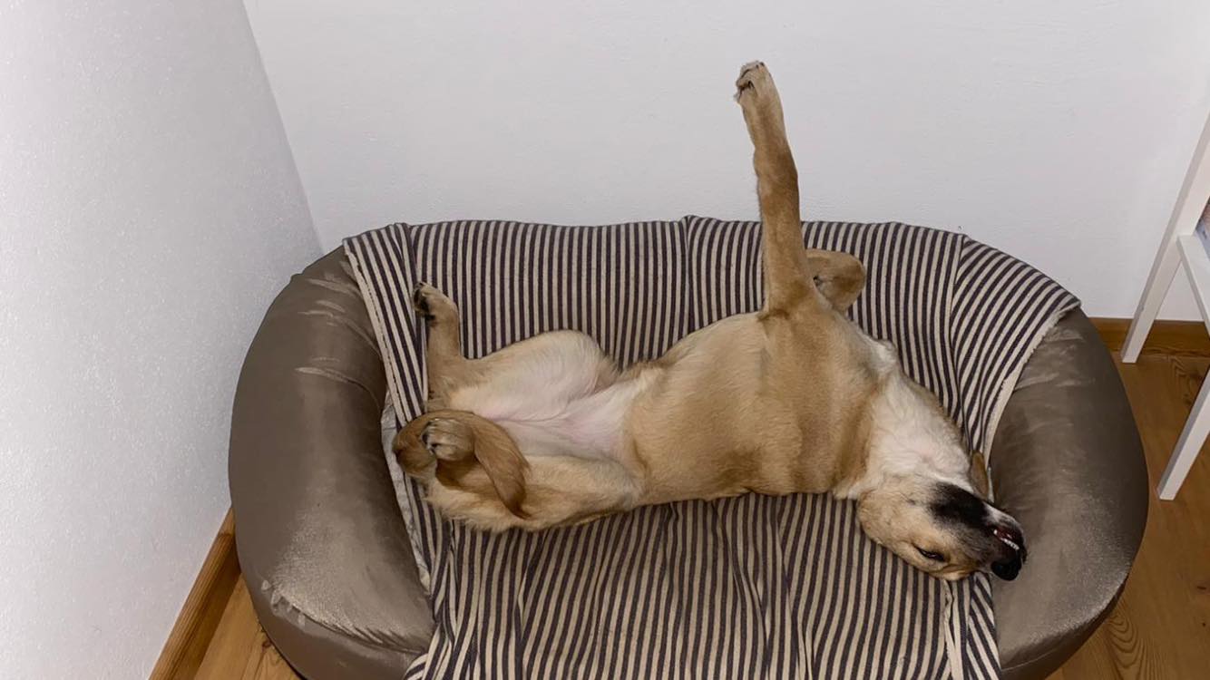 Sie hat sich schon an unseren Tagesablauf gewöhnt und schläft nachts tief und fest. Tagsüber ist sie eher aktiv und möchte am liebsten dauernd Aufmerksamkeit.