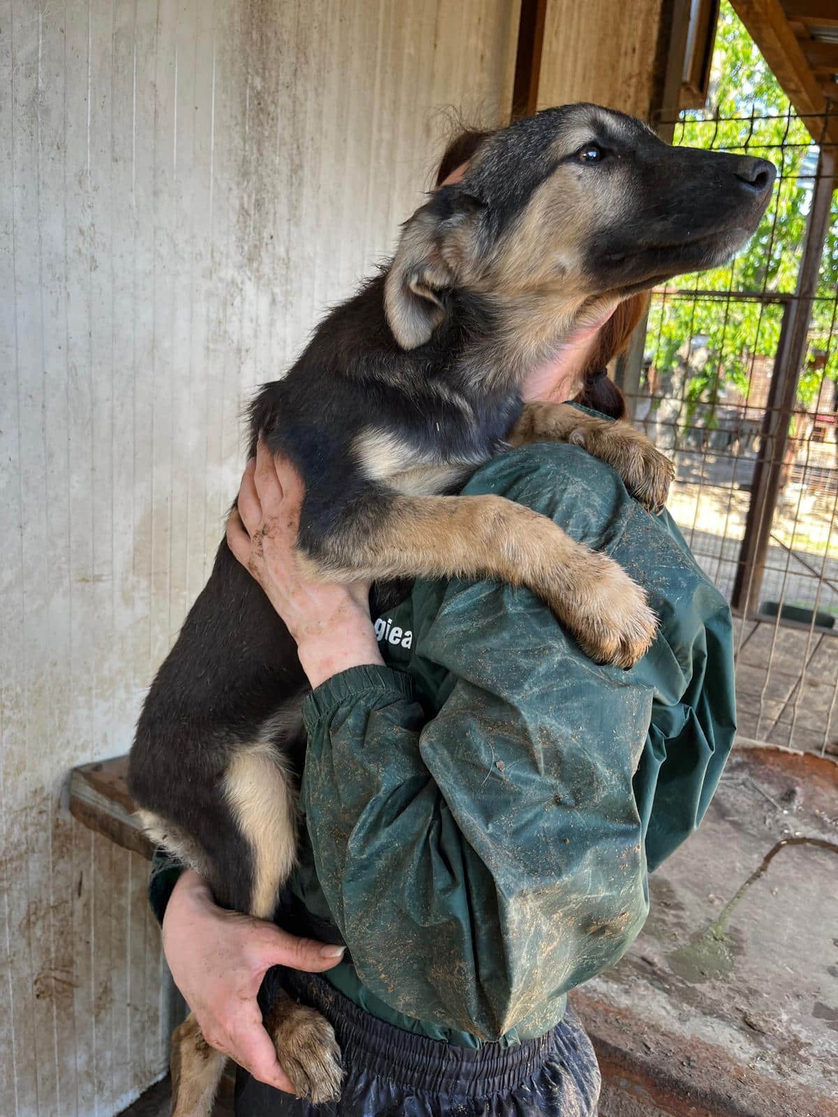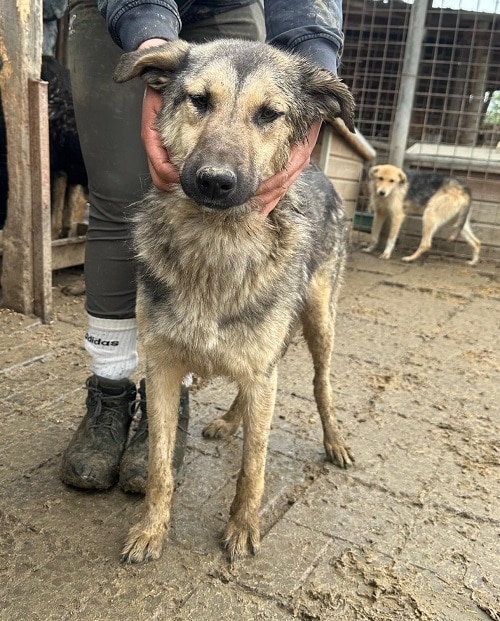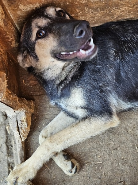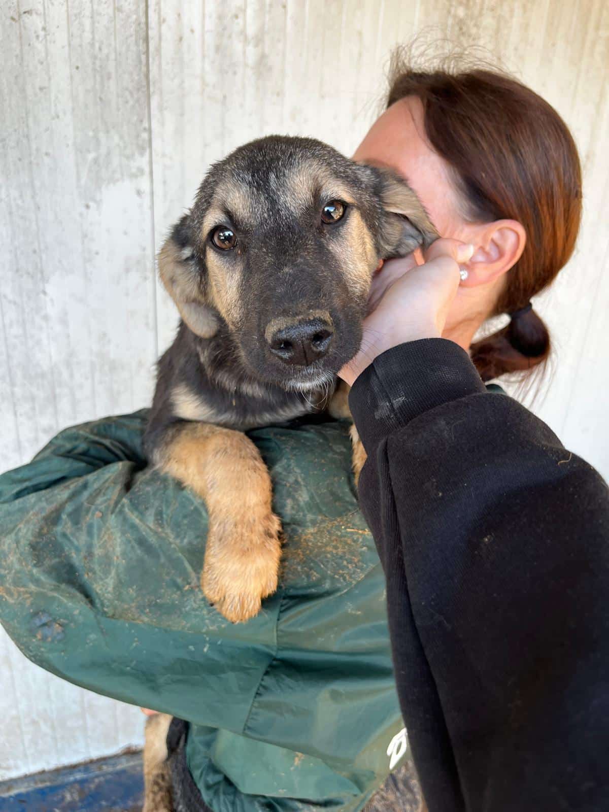 KARI wächst zu einer verspielten Junghündin heran. Sie freute sich über unseren Besuch und die willkommene Abwechslung in dem sonst so trostlosen Shelteralltag. Als wir uns ihr zuwandten, merkte man, dass sie den direkten Kontakt mit Menschen nicht kennt. Wir konnten sie gut in der Hütte streicheln und sie entspannte schnell, als sie merkte, dass wir es gut mit ihr meinen. Sie sitzt mit mind. 13 weiteren Junghunden in einem Kennel und war verträglich.