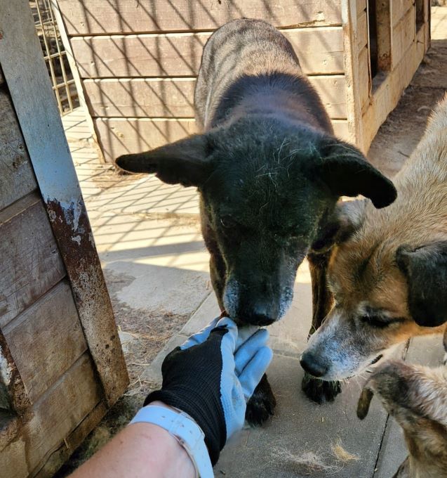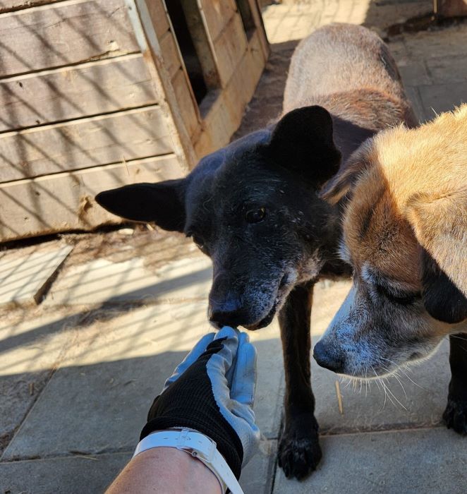 KARLI hat sich positiv entwickelt – von Angstschnappen keine Spur mehr, auch sie war immer um uns herum und freute sich sichtlich über die angebotenen Leckerchen, die sie dankbar aus der Hand nahm. Mit ihrem Bellen forderte sie keck nach Nachschub. Am Näschen durften wir sie sogar vorsichtig berühren. Es wäre der Seniorin sehr zu wünschen, ihren Lebensabend im warmen Körbchen verbringen zu können!