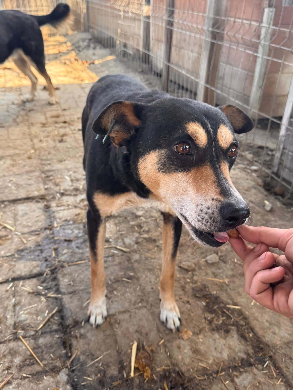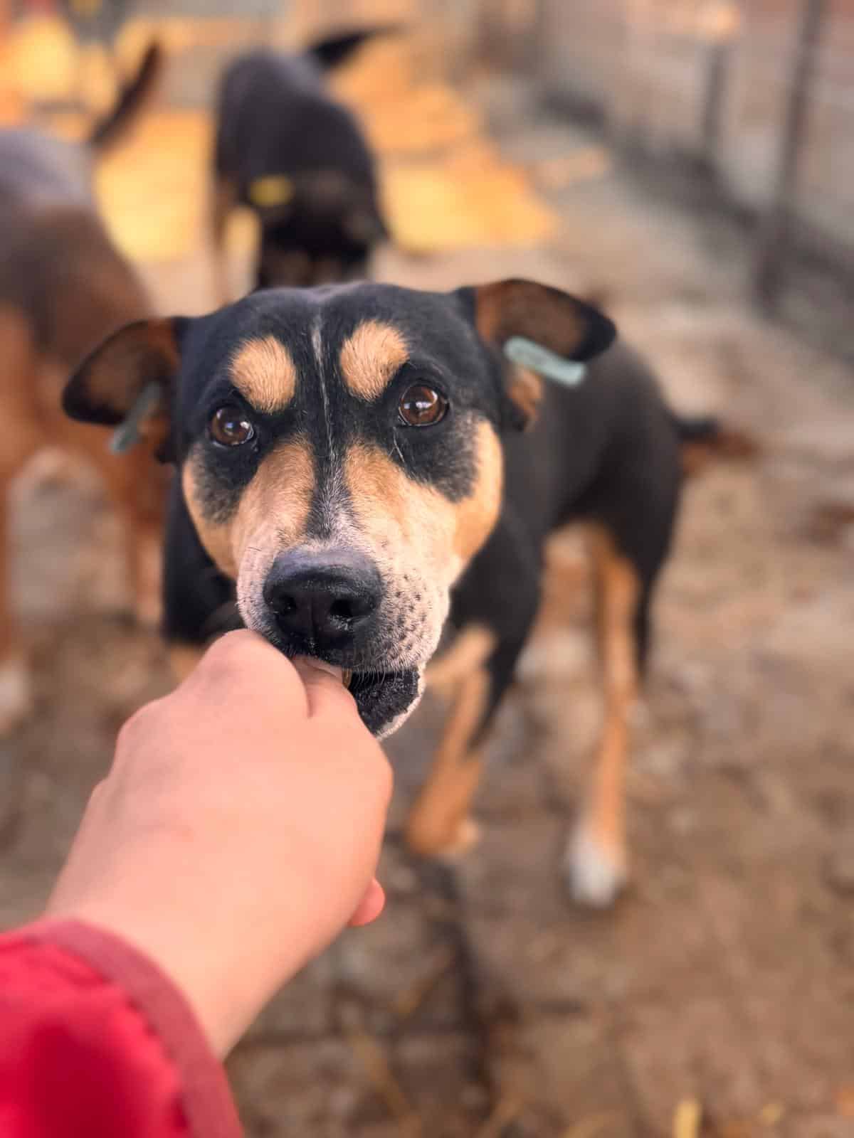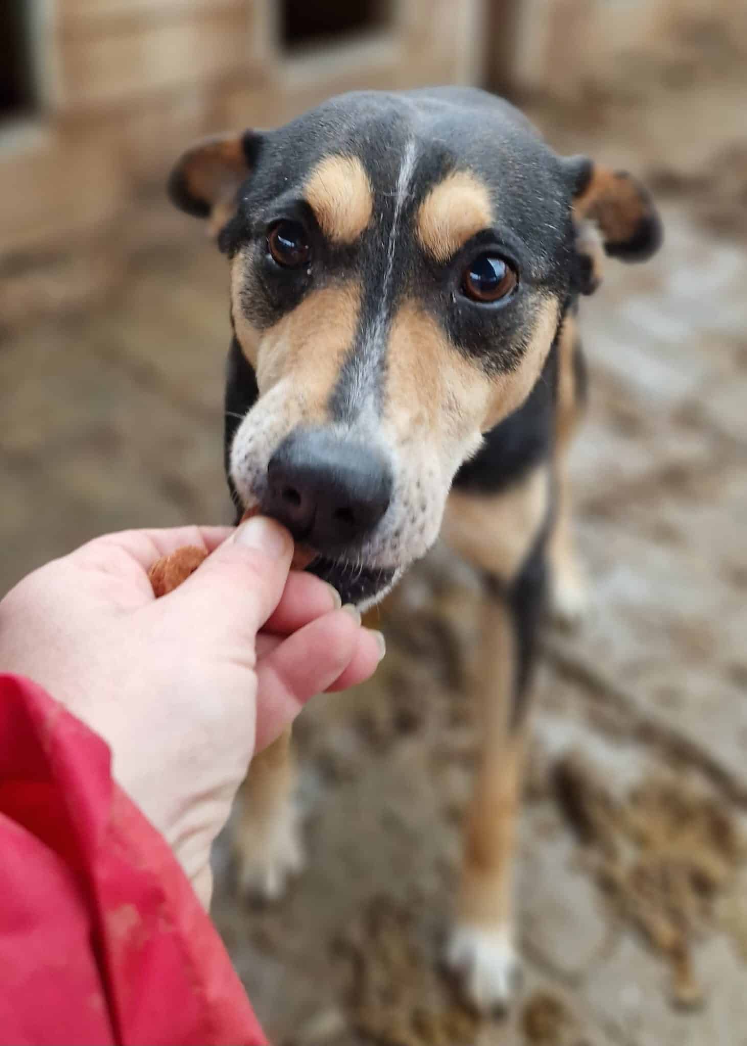 KARLIE ist durch die lange Zeit ohne Kontakt zu Menschen etwas unsicher geworden. Er kommt zwar noch gerne um sich Leckerlis abzuholen, weicht dann aber zurück, wenn man ihn anfassen möchte.