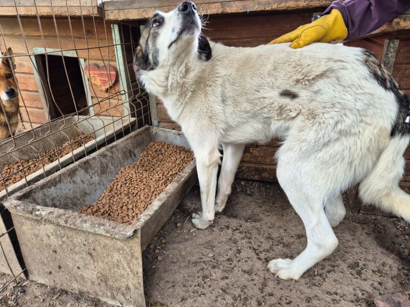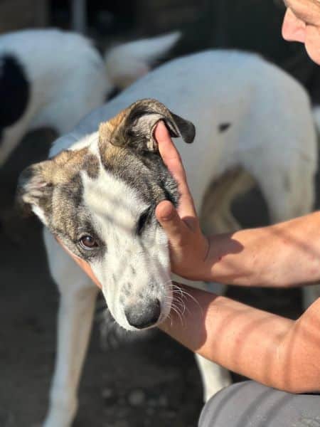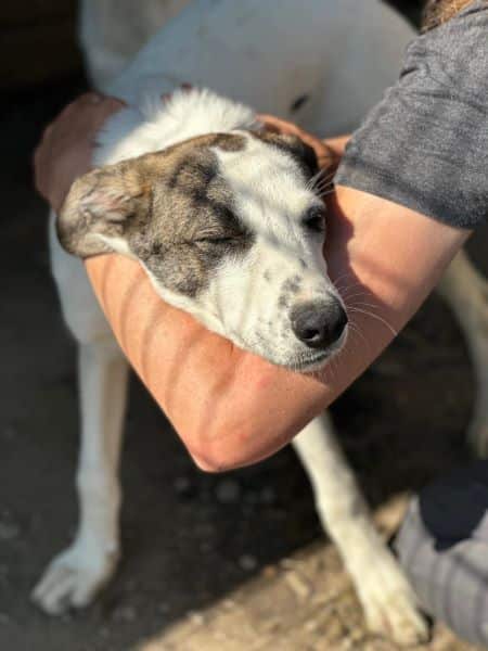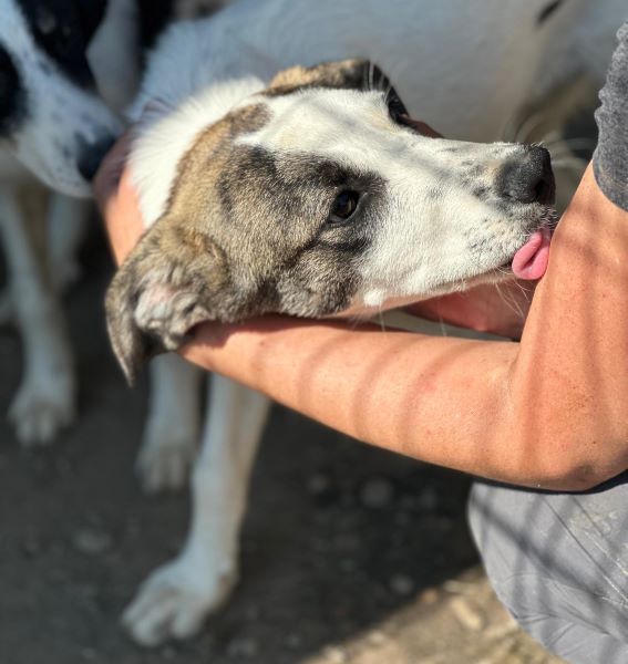 Karlo ist der mutigste der drei Geschwister. Also er merkte, dass Mama Viki sich von uns streicheln ließ, kam er nach recht kurzer Zeit auch vor und holte sich Leckerchen und Streicheleinheiten ab. Wir haben einige Zeit im Kennel verbracht und so die ganze Familie um uns gehabt. Ausgesprochen liebe, nette große Hunde, die hoffentlich ganz bald ihre Familien finden.