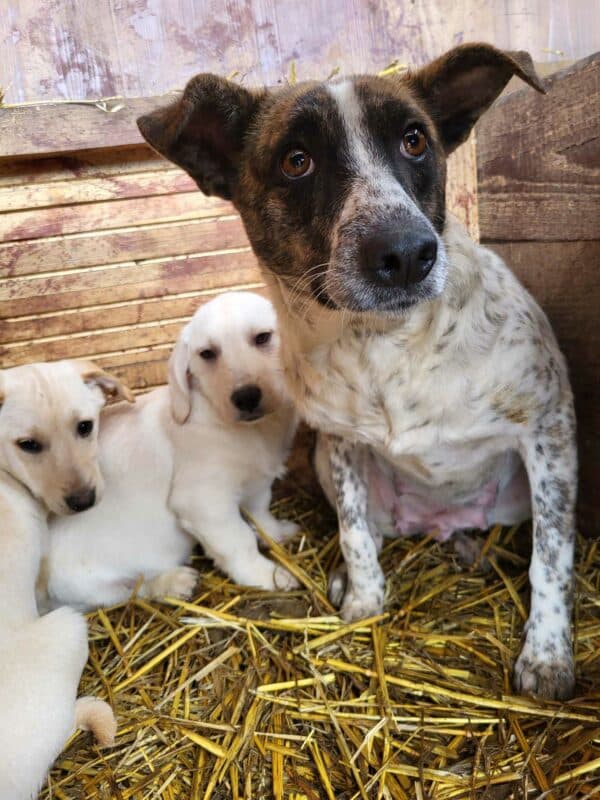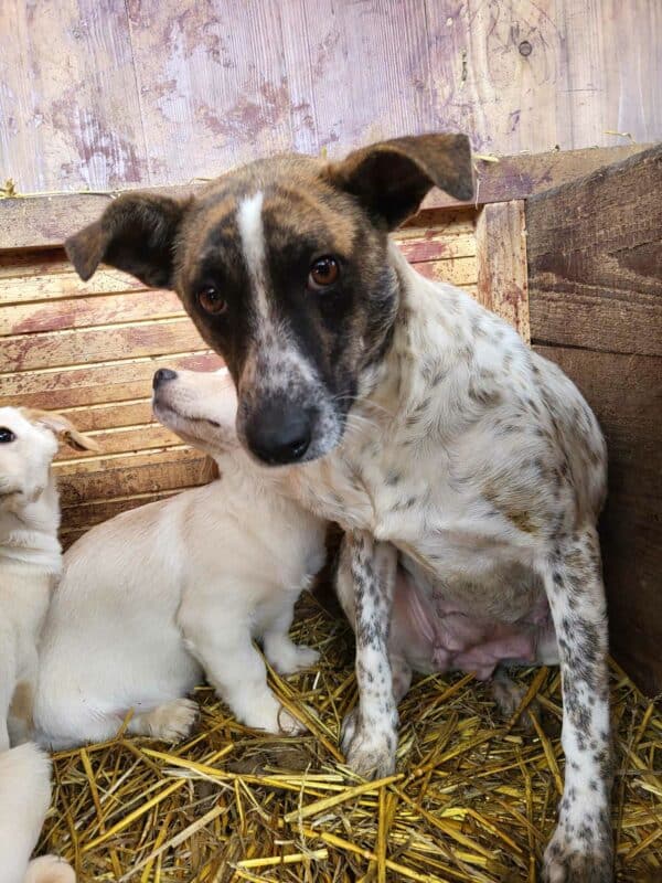 - kam Mitte November 2023 nach einer Verletzung mit ihren sieben – damals 6 Wochen alten – Welpen in die Klinik und wurde dort versorgt