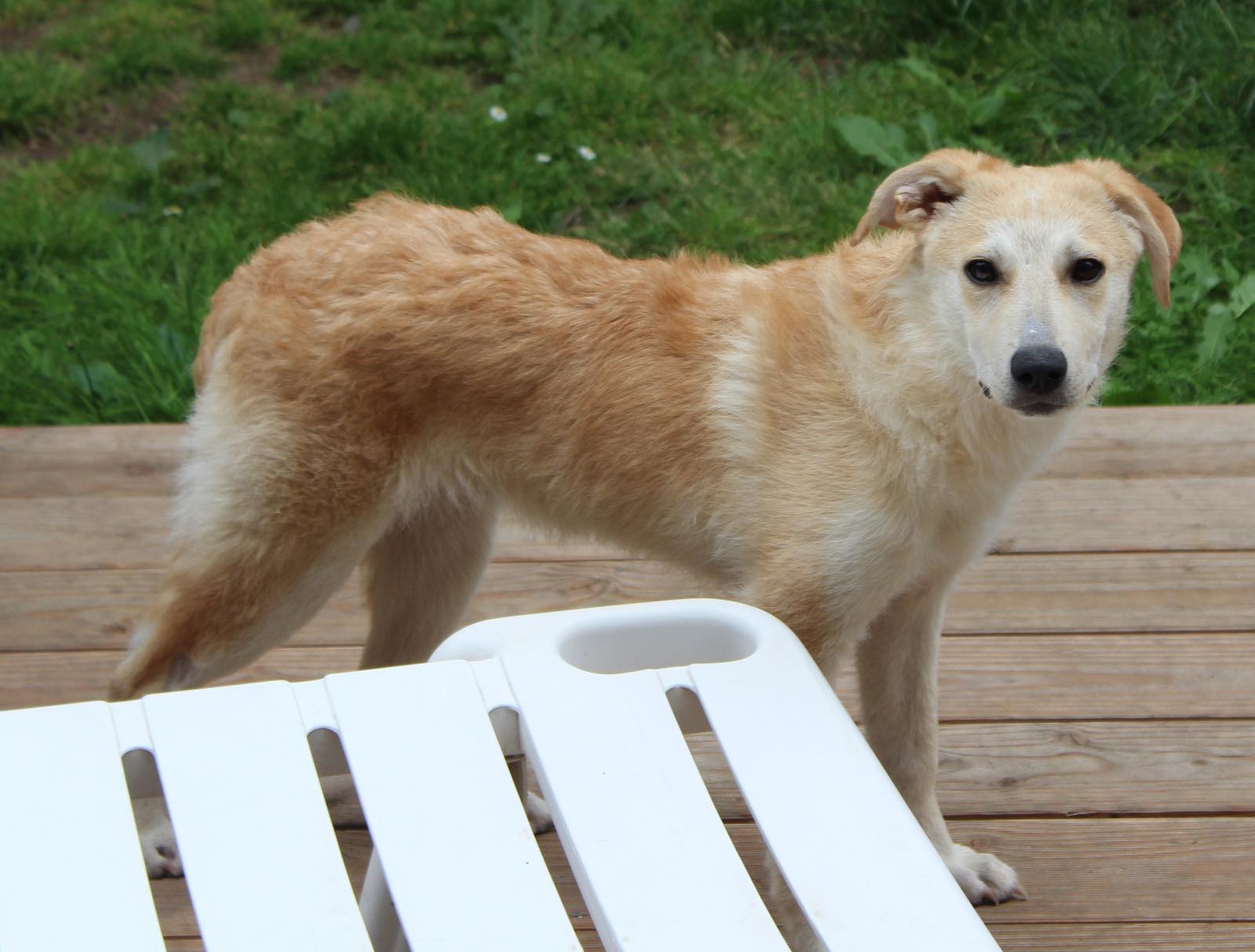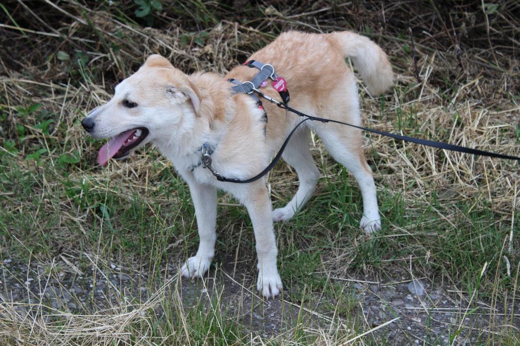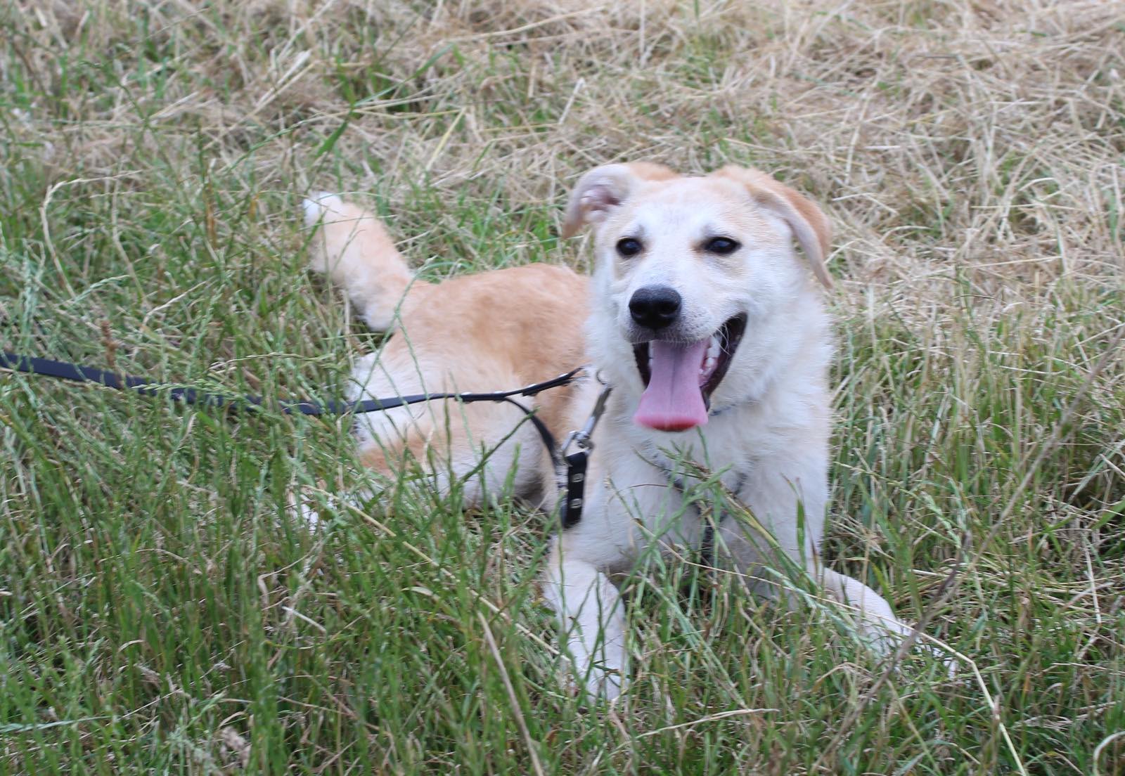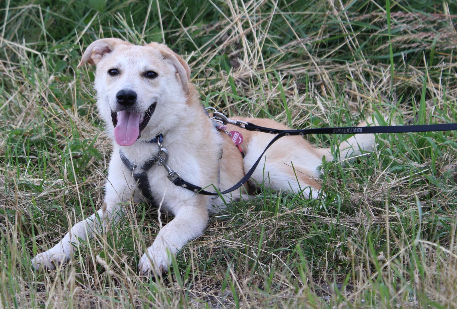 Spaziergänge findet er auch schon toll und ist sehr neugierig. An der Leine läuft er gut mit, zieht jedoch noch an der Leine, was weiter mit ihm trainiert werden muss. Fremde Umgebungen und Geräusche machen ihm nichts aus, unsicher wird er jedoch bei Gegenverkehr und fremden Hunden an der Leine. Hier muss der Kleine einfach noch etwas sicherer werden. Wasser, seine Hundekumpels und durch hohes Grad Stromern liebt er dagegen. Sowohl mit den Hunden als auch mit den Katzen auf der Pflegestelle ist er sehr verträglich, bei den Katzen muss man ihn natürlich ab und zu noch etwas bremsen, da er junghundtypisch wild ist im Spiel. Ansonsten ist er zuhause eher ruhiger, schläft gerne unter dem Tisch bei seinen Menschen und liegt auch gerne im Garten.