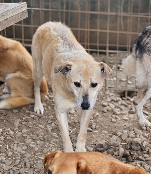 KASIO sitzt seitdem er ein Welpe war in Bucov. 5 Jahre ist er nun und hat noch nie etwas von der Welt da draußen sehen dürfen. Er ist trotzdem sehr interessiert an Menschen und war sofort bei uns, als wir den Kennel betraten. Leckerlis nimmt er gerne und sanft aus der Hand, er lässt sich dabei auch vorsichtig an der Schnauze berühren, weicht dann aber zurück, wenn man ihn anfassen möchte. Wir haben ihn als freundlichen, gut verträglichen Rüden kennengelernt, der aufgrund seiner fehlenden Erfahrung mit Menschen einfach etwas unsicher ist.