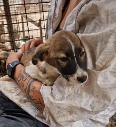 Den kleinen süssen Fratz mussten wir hinter einer Hütte vorholen, hinter der sich der Winzling verkrochen hatte. KASPAR hat das alles ganz lieb mit sich machen lassen und wir haben ihn wenige Minuten bekuschelt und gestreichelt, damit er etwas menschliche Nähe bekommt, da er anfangs zitterte. Bucov scheint ihn zusätzlich zu beängstigen. Er zeigte sich etwas schüchtern, hat sich aber ganz lieb bei allem gezeigt. KASPAR gehört zu den Kleinsten im Kennel und hat es sicher nicht immer leicht. Alleine aufgrund seiner Schüchternheit sollte der zarte Junge schnell dort raus.