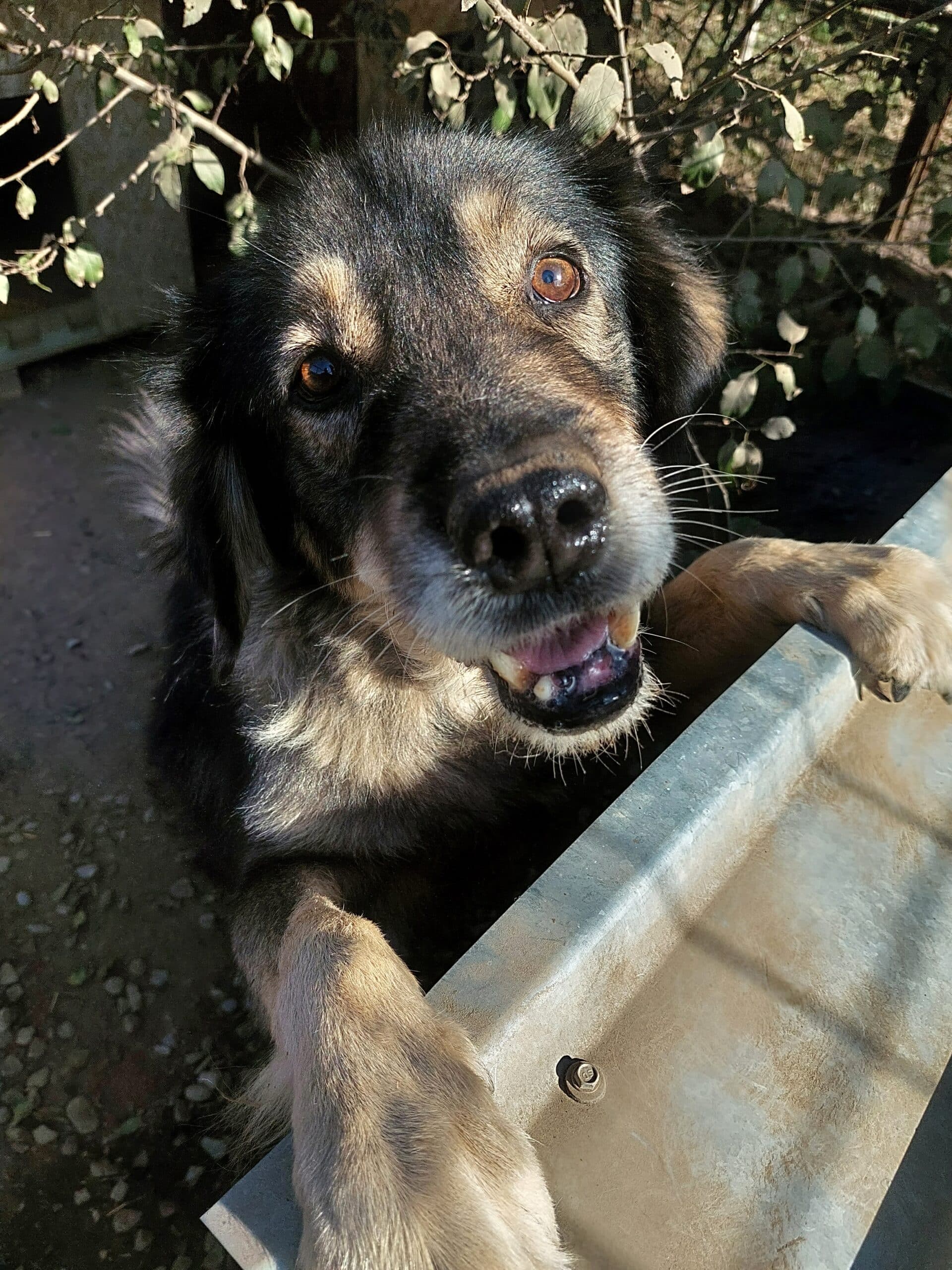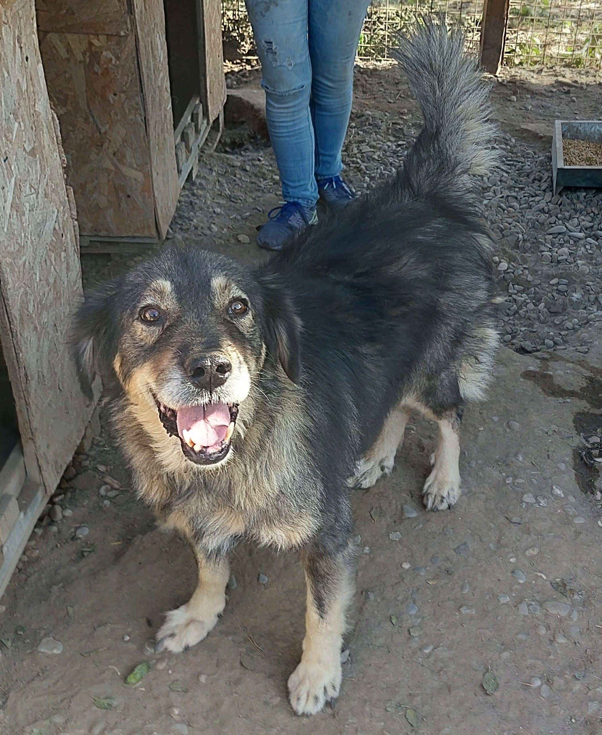 Kasper begrüßte uns freundlich und überschwänglich als wir den Kennel betraten. Er sprang an uns hoch und wir konnten ihn dabei auch gut anfassen und streicheln. Nach einer Weile stellten wir aber fest, dass sein Interesse mehr den Leckerli galt als uns und wenn er dann keins bekommt, wird er auch mal aufmüpfig.