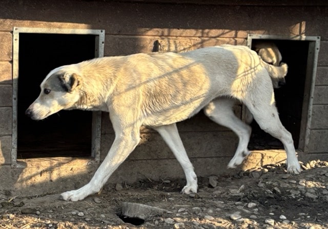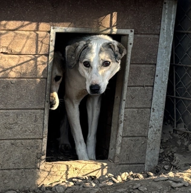 KATALINA ist leider scheu geworden. Weitere drei Jahre sind in Bucov vergangenen und sie hat das Vertrauen in den Menschen verloren. Sie sucht nach Ausweichmöglichkeiten und versteckt sich hinter der Hütte. An den Leckerlies auf dem Boden zeigt sie noch Interesse, traut sich aber nicht, sie zu nehmen, da wir ihr zu nah waren. Hier braucht es sehr erfahrene Menschen im Umgang mit unsicheren Hunden. Katalina verbringt nun mindestens 6 Jahre in Bucov und sollte noch eine Chance auf eine Ausreise bekommen.