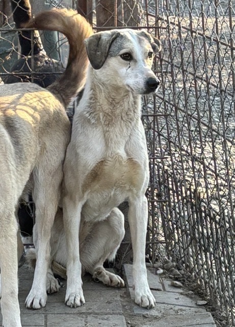 KATALINA ist weiterhin unsicher und traut sich nicht heran, obwohl sie neugierig ist. Mit ihren beiden Kennelmitbewohnern versteht sie sich dagegen prima, die drei geben sich einander Halt. Allerdings sind dies auch unsichere Hunde, von denen sie sich somit kein anderes Verhalten abschauen kann. Sie braucht dringend souveräne Hunde um sich.