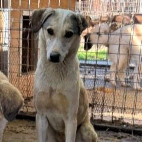 Im Gegensatz zu SABA, die sich bei unserem letzten Besuch trotz ihrer Ängstlichkeit uns Menschen gegenüber streicheln ließ, verkroch sich KATALINA sofort in einer Hütte, sobald wir auf sie zukamen. Wenn man sie dort jedoch streichelt, bleibt sie völlig defensiv und würde sich am liebsten unsichtbar machen. Auch für diese hübsche Maus suchen wir Menschen mit sehr viel know how mit ängstlichen Hunden.