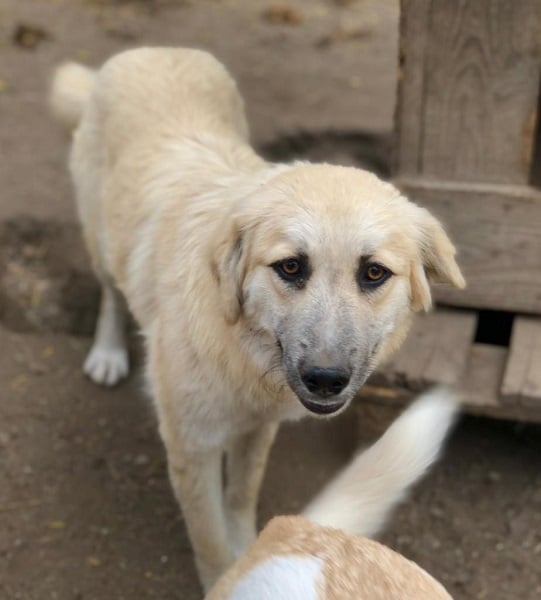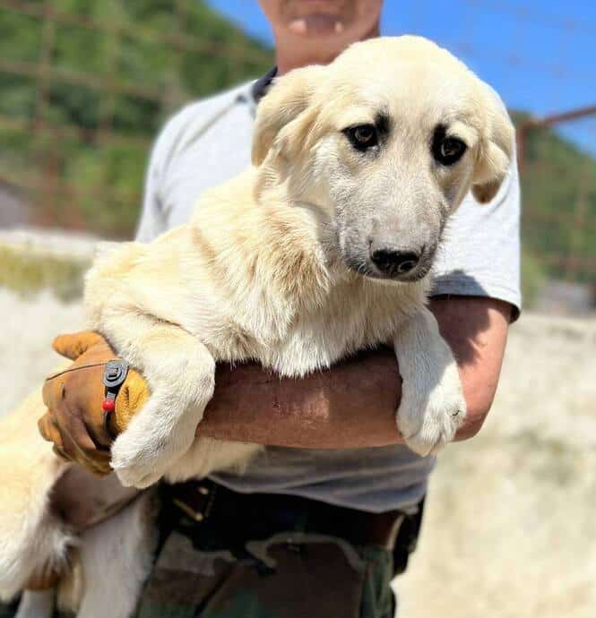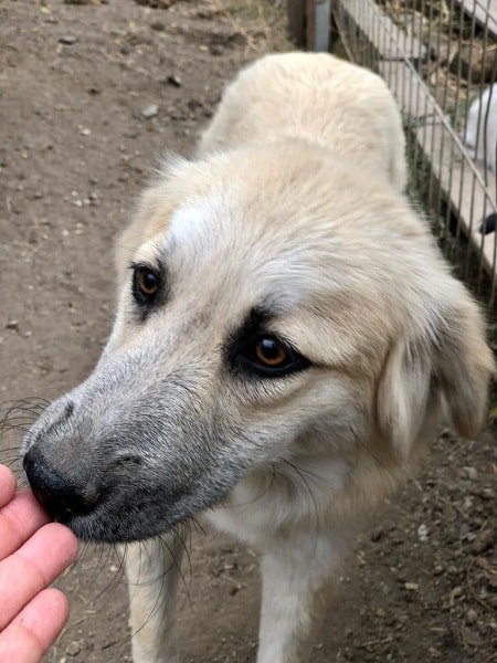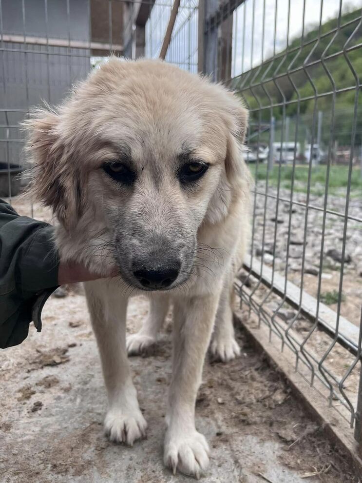 Kathie ist eine wunderschöne Hündin mit mittellangem Fell. Kathie war sehr neugierig, kam immer wieder zu uns und nach kurzer Zeit nahm sie gerne die Leckerchen aus den Fingern. Richtig anfassen konnten wir sie leider nicht. Dafür war die Zeit zu kurz und ihr Mut zu klein. Sie wird also etwas Eingewöhnungszeit brauchen. Mit ihren 4 Geschwistern versteht sie sich ausgesprochen gut. Sie geben ihr Halt und in ihrer Mitte traut sie sich auch mehr zu. Aus diesem Grund wünschen wir uns für Kathie ein Zuhause mit einem souveränen Zweithund, der ihr hilft sich in einem Familienleben zurecht zu finden.