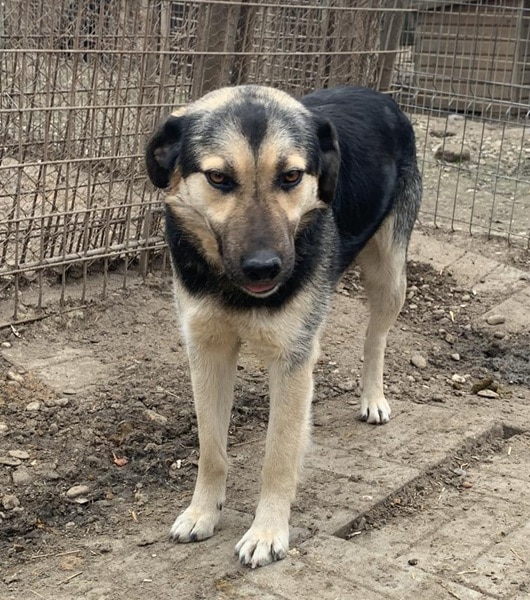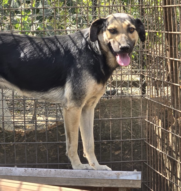 Fast 1,5 Jahre blieb diese süße Maus völlig unentdeckt. Eine große Narbe am linken hinteren Bein lässt vermuten, dass sie mal in eine Falle geraten ist. X ist eine sehr interessierte junge Hündin, die sich uns gegenüber von Anfang an sehr neugierig und freundlich zeigte. Sie nahm gerne unsere mitgebrachten Leckerlie direkt aus der Hand, nachdem ihr Kennelgenosse MINOSCH ihr zeigte, dass wir ihr nichts tun. Auch vorsichtig an der Schnauze berühren konnten wir sie. Mehr war in dieser kurzen Zeit leider nicht möglich. In ihrem Kennel lebt sie aktuell nur mit einem Rüden zusammen, dies scheint gut zu klappen. Wir wünschen uns sehr, dass diese freundliche Hündin schon bald die Chance auf ein Leben außerhalb des Shelters erhält. Ein souveräner Ersthund wäre ihr bei der Eingewöhnung sicher eine große Stütze.