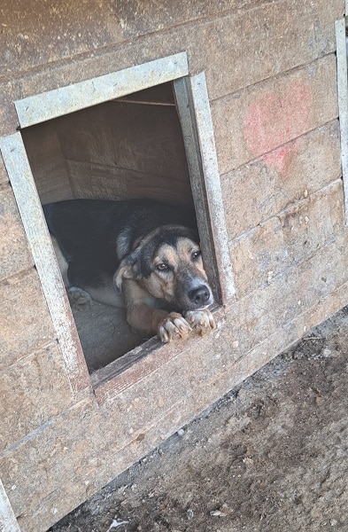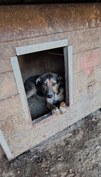 KATOKI zeigte sich bei unserem Besuch interessiert. Er beobachtete das Geschehen in seinem Kennel aufmerksam. Die lange Zeit im Shelter ohne Kontakt zum Menschen haben ihn weiterhin verunsichert.