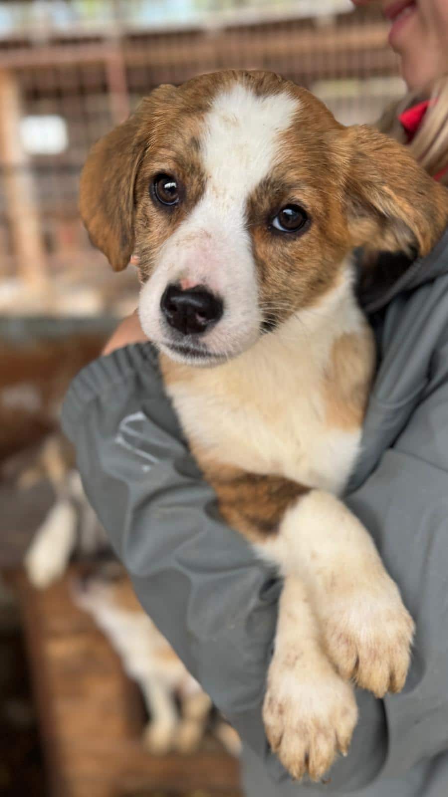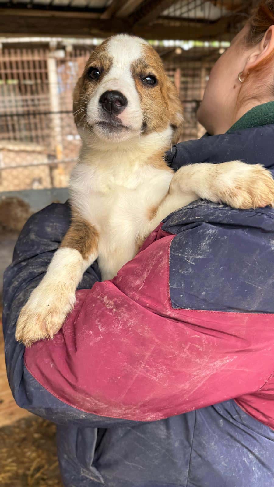 KEARA ist ein zuckersüßes, kleines Welpenmädchen. Sie sitzt mit ihrer Mama MARTHA, vier Geschwistern und noch vier weiteren Welpen in einem kleinen Kennel. Altersentsprechend ist KEARA neugierig, zutraulich, verschmust, welpentypisch und aufgeweckt. Wir konnten sie gut hochheben und überall anfassen und mit den Welpen in ihrem Kennel ist KEARA verträglich und verspielt.