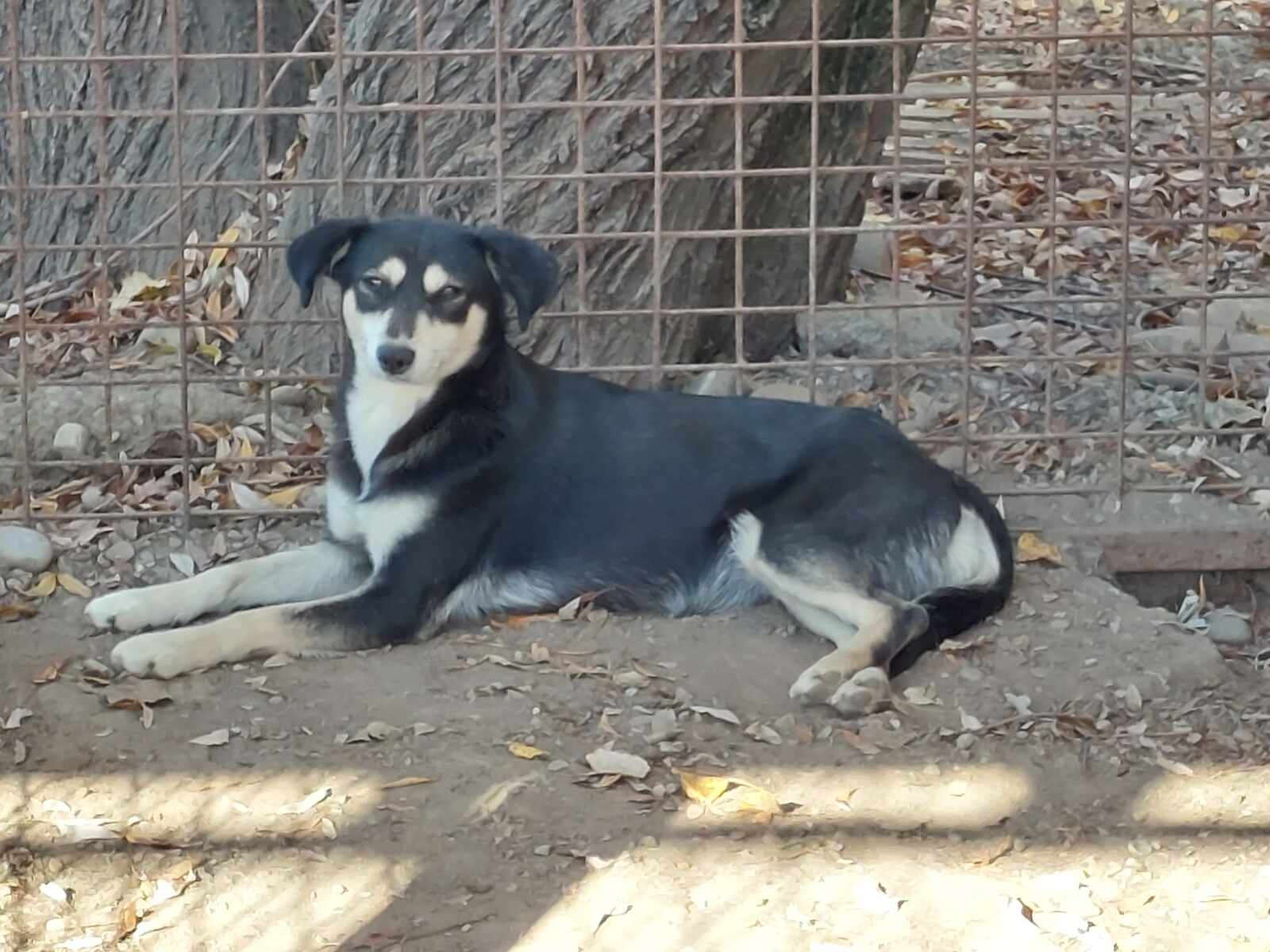 KEELIA ist mittlerweile in einen Außenkennel umgezogen. Hier zeigt sie sich unsicher und versteckte sich hinter der Hütte. Dort konnten wir sie dann vorsichtig streicheln.