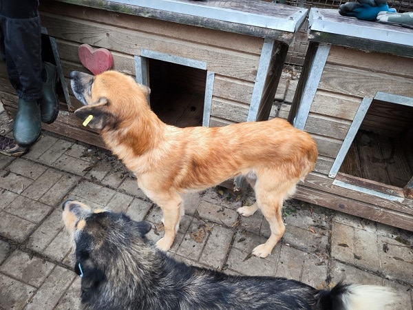 KENO ist trotzdem kein einfacher Hund, dass haben wir auch bei diesem Besuch wieder feststellen müssen. Er schaute zwar neugierig nach uns, aber so richtig hat er keinen Kontakt gesucht. Wir haben ihn Futter in seine Hütte gelegt, was er auch sofort frass, aber als wir ihm erneut Futter reinlegen wollten, schnappte er nach uns. Er lässt sich vorsichtig streicheln, aber kann das gefühlt nicht einordnen oder genießen. Hier braucht es Menschen, die Hund gut lesen können. Wir schätzen auch an seinem Verhalten insgesamt, dass ihn die vielen Hunde in seinem Kennel sehr überfordern und er lieber seine Ruhe als Einzelhund hätte.
