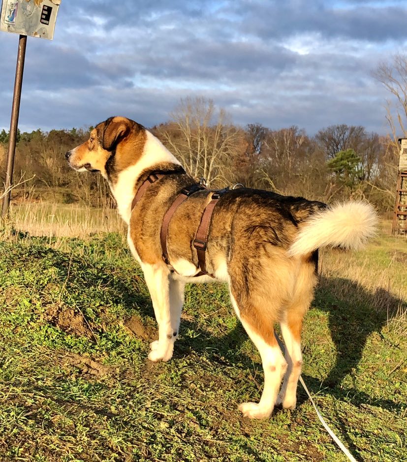 Keno lebt nun seit drei Monaten auf seiner Pflegestelle. Er hat ein ganz zauberhaftes Wesen und ist zu Mensch und Tier freundlich und äußerst höflich. Keno kommt bei Hundebegegnungen auch mit schwierigen Charakterköpfen gut klar und geht Ärger aus dem Weg. Nichtsdestotrotz lässt er sich aber auch nicht die Butter vom Brot nehmen. Keno liebt ausgedehnte Spaziergänge und vor allem das Toben mit seinen Hundefreunden. Rein äußerlich hat er eine Wandlung durchgemacht: Nach dem Fellwechsel und viel Bewegung ist er nun rank und schlank. Keno ist ein Sonnenschein, der sehr gerne als Zweithund vermittelt werden kann. Bahnfahren kennt er. Das stresst ihn noch etwas, aber er schlägt sich tapfer und Übung macht ja bekanntlich den Meister. Über Ostern befand sich Keno in Urlaubsbetreuung auf einer anderen Pflegestelle. Hier hat er sich problemlos eingefügt, was darauf schließen lässt, dass ein Umzug in ein neues Zuhause voraussichtlich entspannt ablaufen wird.