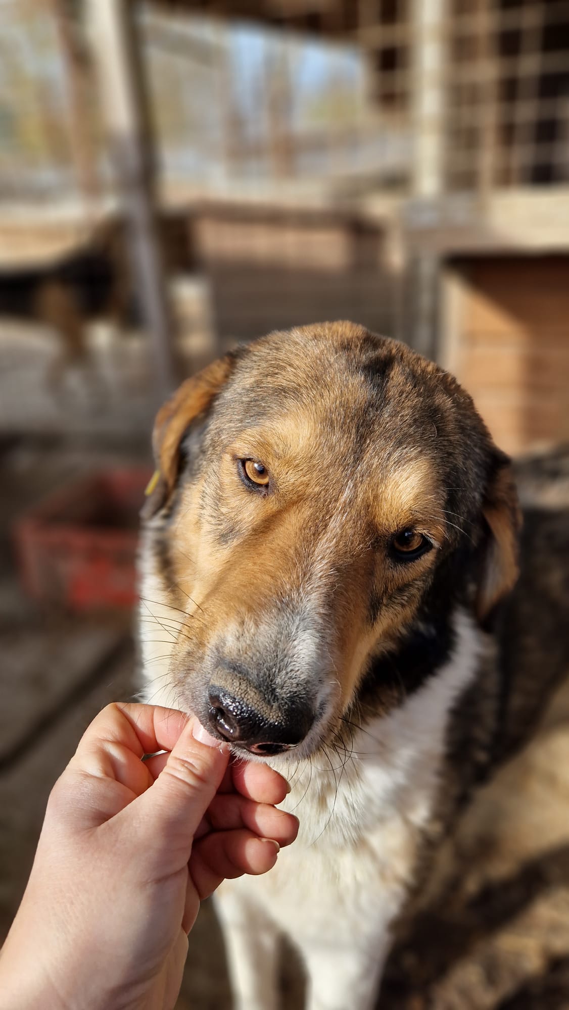zunächst war es ihm sichtlich unwohl, als wir seinen Kennel betraten, er taute aber auf und zeigte sich dann an uns und den mitgebrachten Leckerlies interessiert