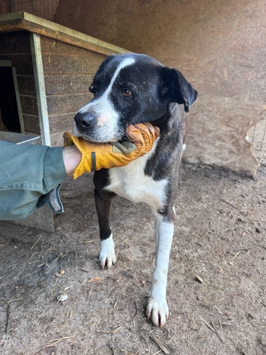 Er ist freundlich und verträglich in der gemischten Hundegruppe, aber was ihm wirklich fehlt, ist ein Platz zum Ankommen. Ein Zuhause, in dem er geliebt wird, vielleicht zum ersten Mal in seinem Leben.