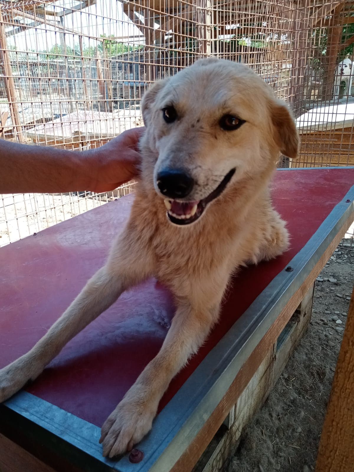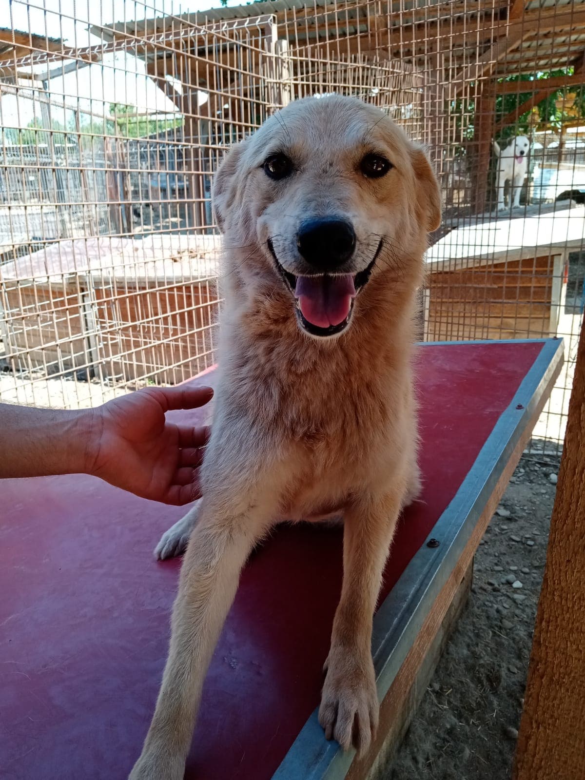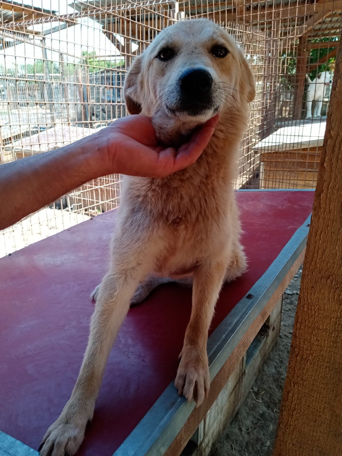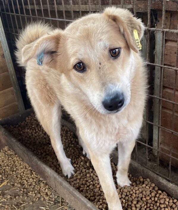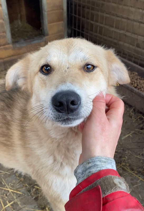 KEYO begrüßte uns neugierig. Er war anfangs etwas zurückhaltend, aber taute schnell auf und zeigte sich anschließend freundlich, verträglich, gut anfassbar und verspielt. Er hat sich sehr über die mitgebrachten Leckerlies und die seltene Aufmerksamkeit gefreut, die sein trister Shelter-Alltag sonst nicht zu bieten hat.