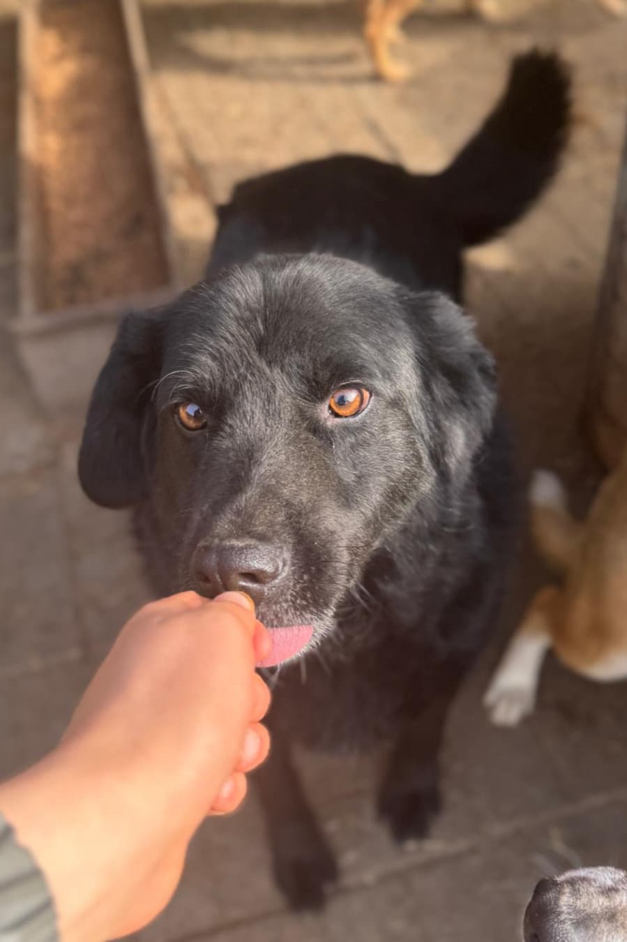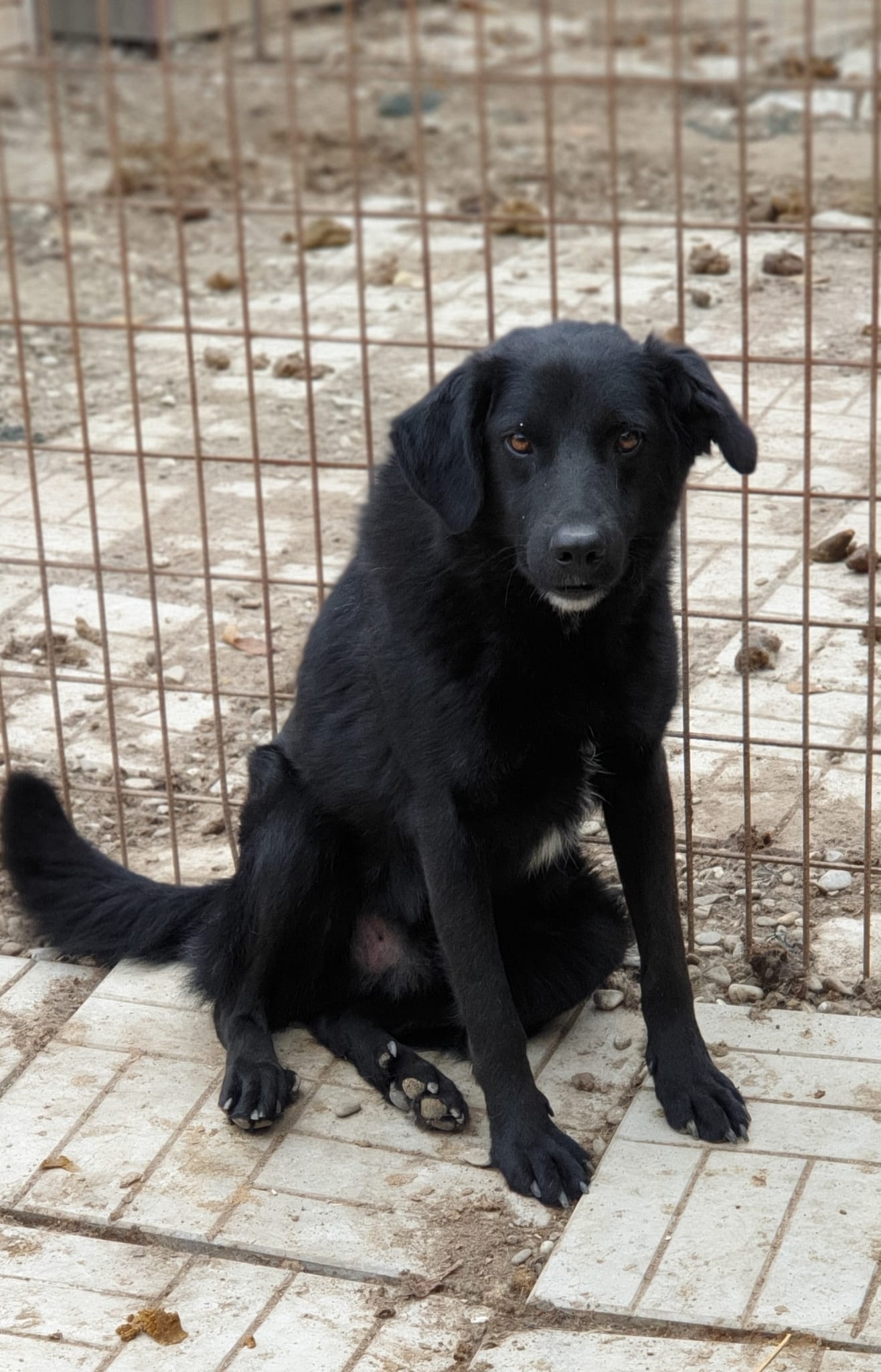 Unglaubliche sieben Jahre muss der arme KIKO schon im Shelter ausharren. Auch bei diesem Besuch war er wieder neugierig und freute sich über uns. KIKO nimmt gerne unsere Leckerlies aus der Hand und überspielt seine Unsicherheit mit Spielaufforderungen. Wenn er sich Leckerlies abholt, können wir ihn auch vorsichtig an der Schnauze berühren. KIKO sitzt schon so lange ohne Menschenkontakt im Shelter und ist dennoch weiterhin interessiert an uns Menschen und versucht, Kontakt aufzunehmen – so gut, wie er es eben gelernt hat. Wir hoffen sehr, dass sich erfahrene Menschen finden, die KIKO eine Chance geben, bevor es für ihn zu spät ist – wir denken, dass er das Potential hat, gut aufzutauen.