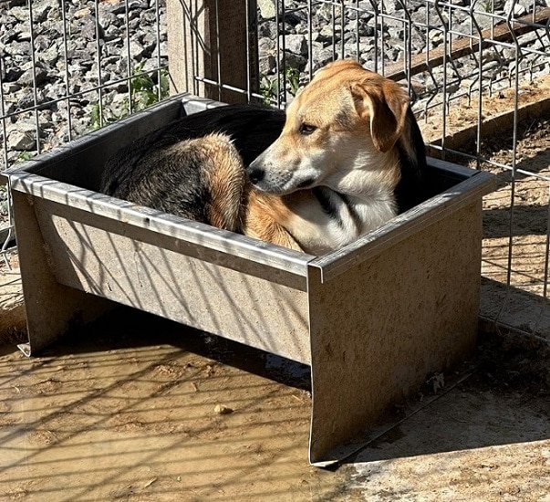 KILIA blieb lieber in ihrer Hütte, hat sich zurückgezogen und Abstand gehalten. Sie ist unsicher und Berührungen sind noch ungewohnt. Im Schutz der Hütte nimmt sie Leckerlis aus der Hand und lässt sich überall anfassen. KILIA braucht Menschen mit Herz, Geduld und Verständnis, Menschen, die nichts erwarten, sondern ihr die Zeit geben, in ihrem Tempo Vertrauen zu fassen.