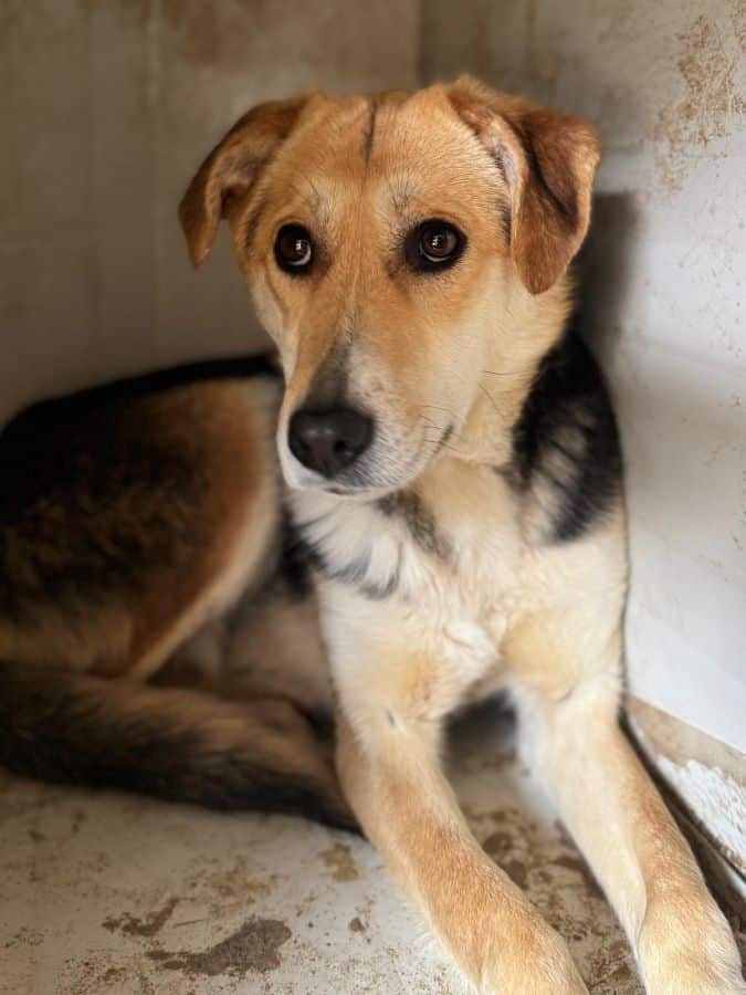 Update 09/24: Die kleine hübsche Hündin benötigte erst einmal ein wenig Auftauzeit mit uns. Unsere mitgebrachten Leckerlies nahm sie allerdings direkt sehr gerne vom Boden, so dass wir peu a peu näher an sie heran kommen konnten. Kilia ist sehr knuffig, zart und schüchtern. Ein Familie, die ihr Zeit zum Ankommen und Sicherheit gibt, wird mit Kilia eine tolle Begleiterin bekommen. Kilia wird in einem Leben ausserhalb des Shelters sicherlich aufblühen und ihre Schüchternheit verlieren. Da sie sich sehr gut im Kennel mit den anderen Hunden versteht, kann sie gern Zweithund werden
