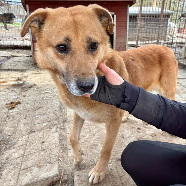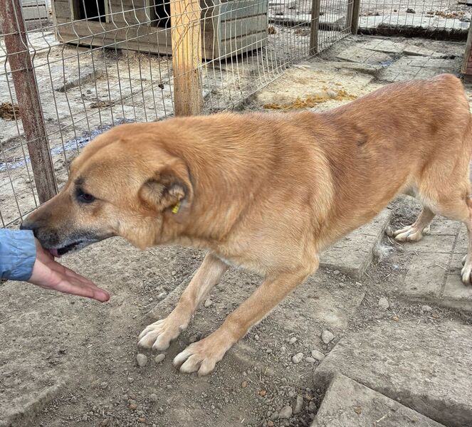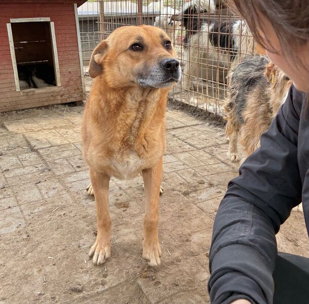 Dieser zuckersüße und neugierige Rüde freute sich riesig über unseren Besuch und konnte kaum fassen, dass endlich ein paar liebe Menschen etwas Zeit für ihn haben. Aufgeregt sprang und flitzte KIMBO durch den Kennel und kam immer wieder zu uns heran, um an den interessanten Händen zu schnuppern. Als wir ihn behutsam streichelten, hielt er rührend inne und schien regelrecht überrascht, wie gut sich diese vermutlich ungewohnten Streicheleinheiten anfühlen. KIMBO beruhigte sich rasch und man spürte deutlich, wie er auftaute und die Aufregung von ihm abfiel. Mit den beiden Rüden in seinem Kennel schien er verträglich. Für KIMBO suchen wir einen liebevollen Platz bei Menschen, die ihn geduldig ankommen und auftauen lassen, die sein Potenzial sehen und ihm zeigen, was Vertrauen ist.