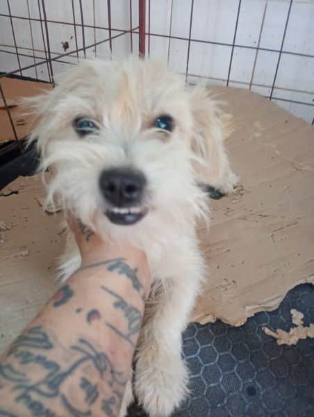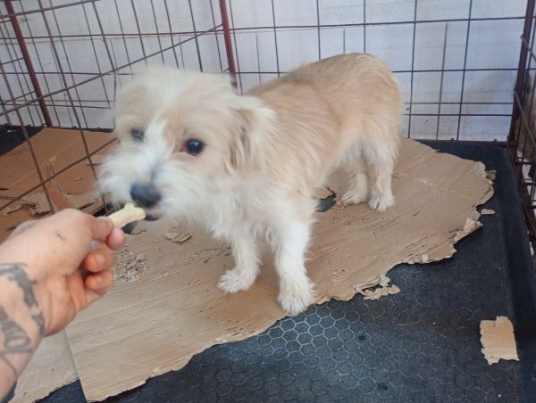 Diese kleine Hündin sitzt in einer kleinen Box im Vethouse. Woanders ist momentan leider kein Platz für sie. Sie ist eine ganz bezaubernde und freundliche Hündin, die sich gut anfassen lässt. Sie ist verspielt und etwas wuselig, einfach entzückend. Hoffentlich wird sie bald von ihren zukünftigen Menschen gesehen.