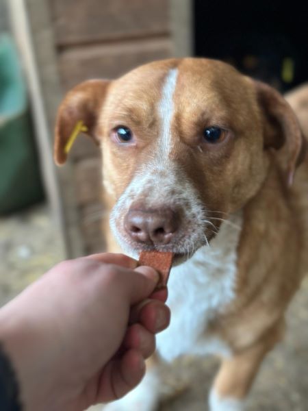 Der kleine Hundemann KIMONI zeigte sich aufgeschlossen und interessiert. Er kam zu uns und holt sich Leckerchen aus der Hand ab und war gut anfassbar.