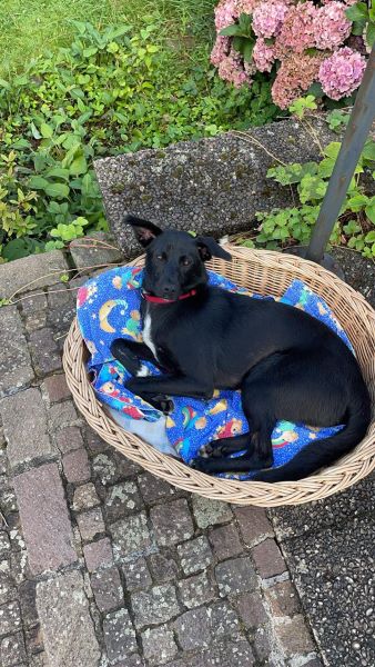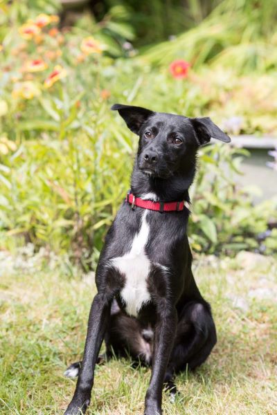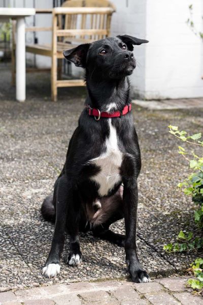 Anfangs ängstlich und vorsichtig, hat er sich schnell eingelebt. Er liebt es, mit den zwei Hunden der Pflegestelle durch den Garten zu toben – das möchte er auch in seinem eigenen Zuhause unbedingt haben.