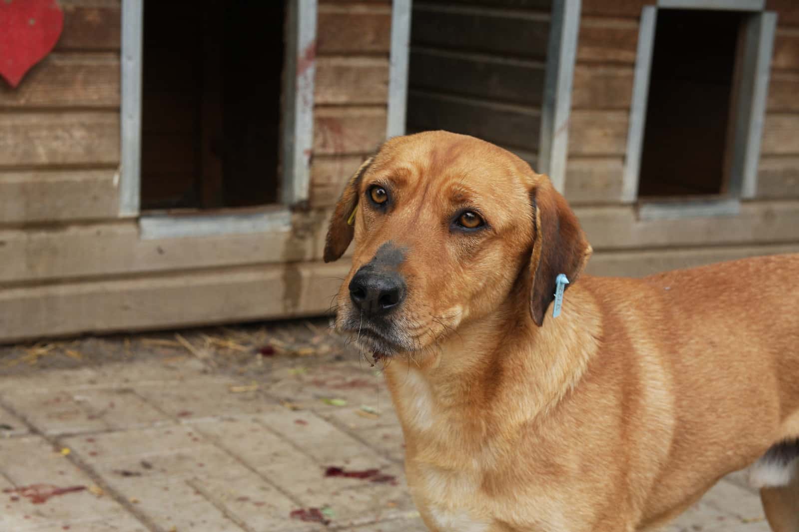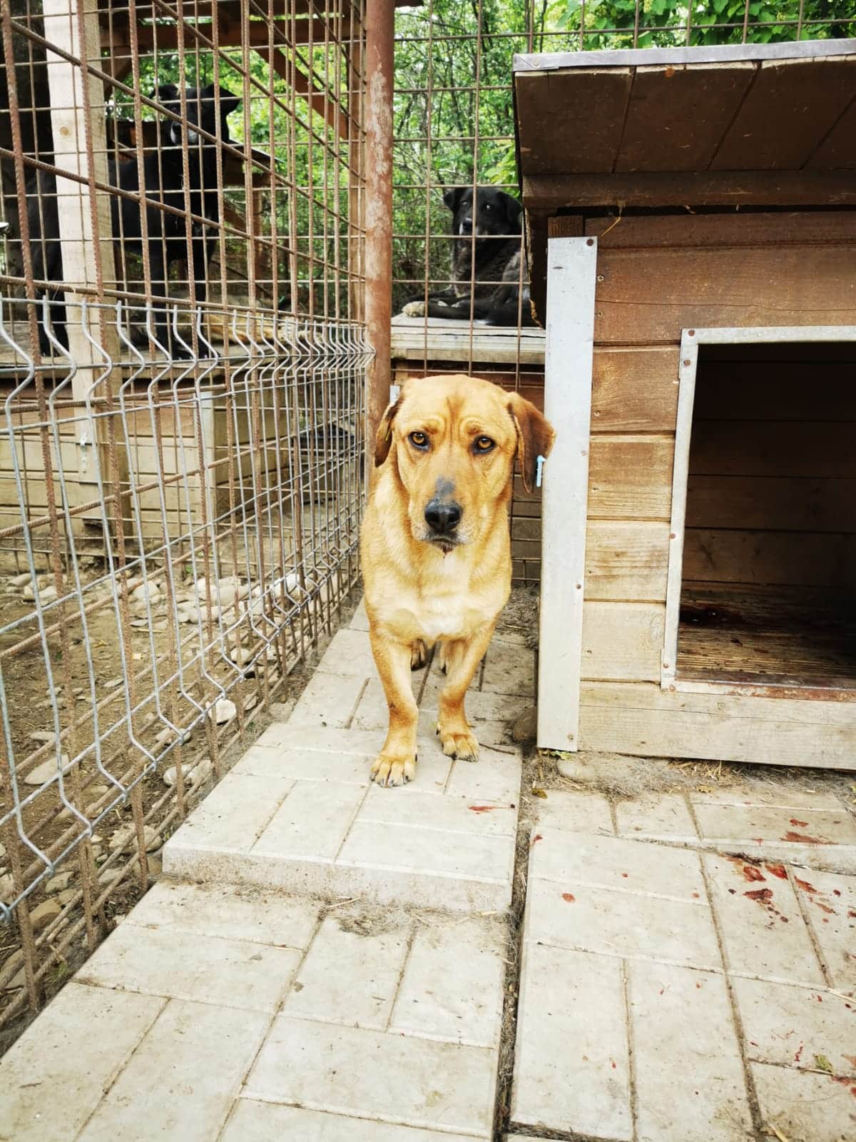 Als wir seinen Kennel betraten, hielt sich dieser Rüde erst noch im Hintergrund auf. Als er jedoch merkte, dass wir ihm nichts böses wollen und zudem super leckere Snacks dabei haben, konnten wir ihn doch noch überzeugen hinter seiner Hütte hervorzukommen. Diese Unsicherheit wird sich in einem verständigen Zuhause ziemlich schnell legen. In seinem Kennel, indem er nur mit größeren Hunden zusammenlebt, geht der kleine Kerl leider ziemlich unter.