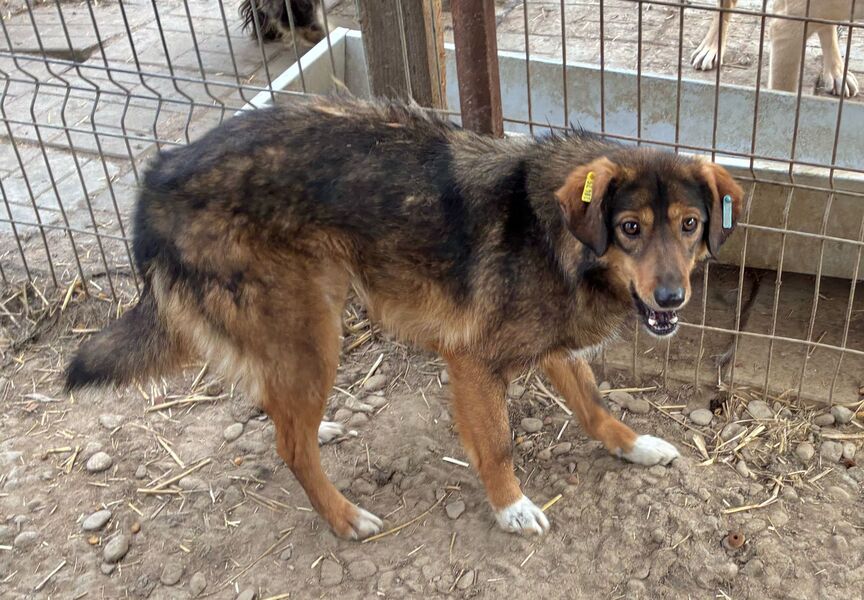 Diese hübsche Hündin hofft seit bereits 1,5 Jahren im riesigen Shelter auf ihre Chance und lebt mit mehreren Hunden in einem großen Kennel. Im alltäglichen Zusammenleben kommen viele Rudel gut zurecht, doch sobald es um Ressourcen geht, denkt natürlich jeder an sich und KIOWA scheint in ihrer Gruppe nicht den besten Stand zu haben. Sobald wir den Kennel betraten, ging sie zum Futtertrog und fraß. Während wir uns mit den anderen Hunden beschäftigten, beobachtete KIOWA uns neugierig aus der Ferne und traute sich bis auf ca. 30cm heran, um unsere Leckerlie in unserer Anwesenheit vom Boden zu naschen. Für diese sensible Hündin wünschen wir uns einen ruhigen Platz bei erfahrenen Menschen, die KIOWA behutsam an die Pfote nehmen und sie in ihrem Tempo ankommen und auftauen lassen. Ein netter und aufgeschlossener Ersthund würde KIOWA die Eingewöhnung sicher erleichtern und ihr helfen, ihre Sorgen zu vergessen und Vertrauen zu lernen.