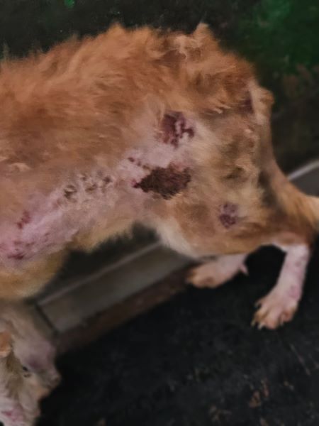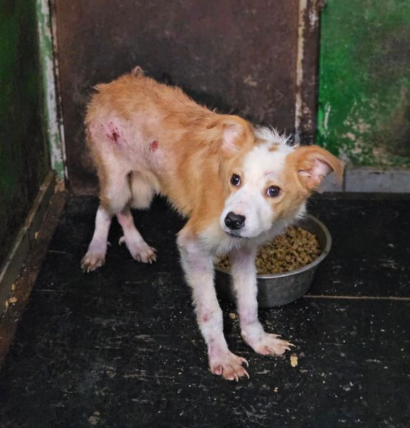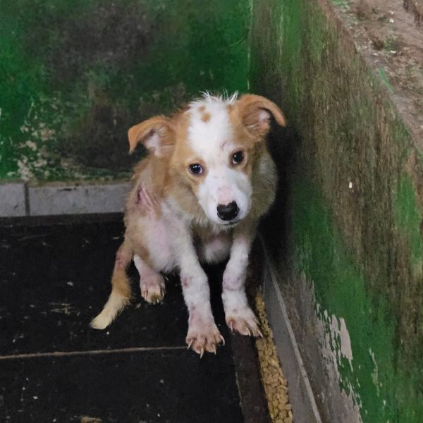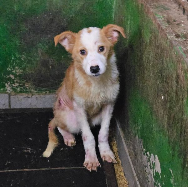Hündin geb. ca. Juni 2024 Größe: wird ca. mittelgroß (Stand 01/2025: ca. 40cm) Starke Hautprobleme, leicht durchtrittig – sollte dringend ausreisen!