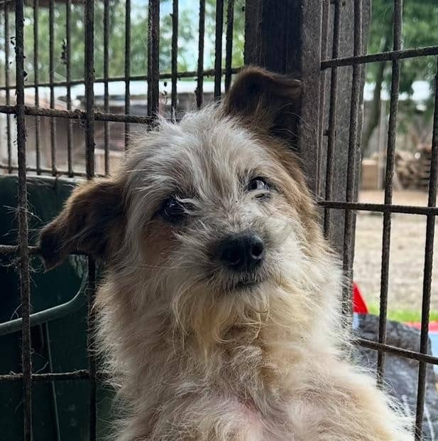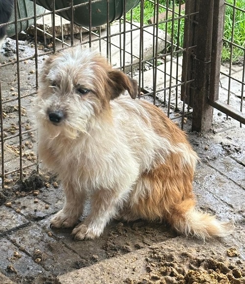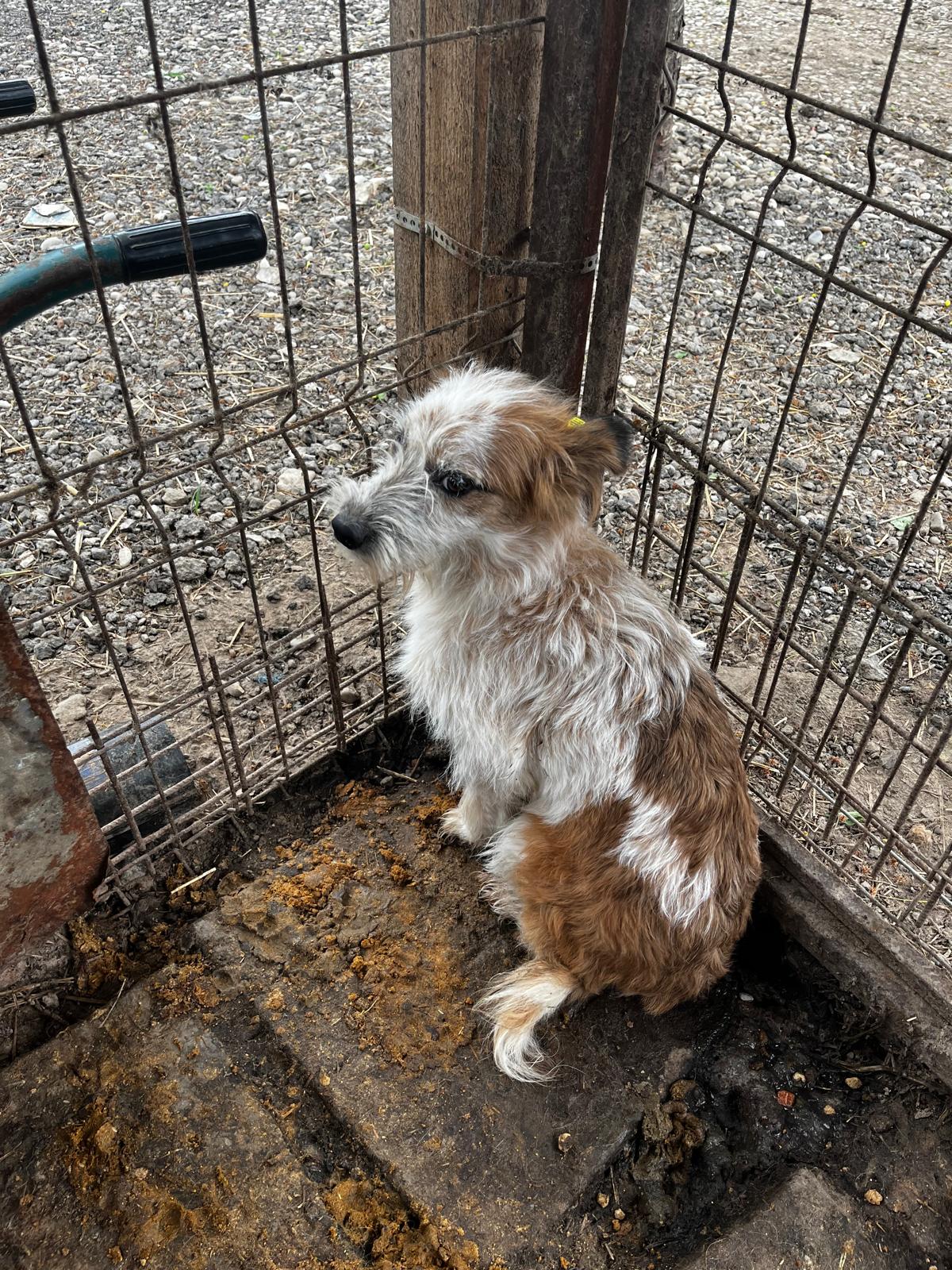 Als wir den Kennel betraten, entdeckten wir Kiro zunächst gar nicht – umso überraschter waren wir, als wir den kleinen Kerl schließlich im Kennel sahen. Still und aufmerksam beobachtete er unser Tun, ohne sich aufzudrängen.
