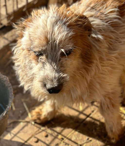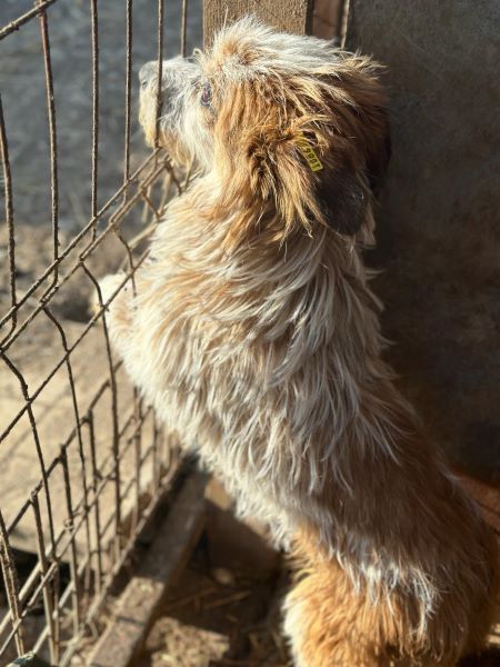 Er lebt mit einigen Welpen sehr verträglich zusammen. Leider zeigt er sich ausgesprochen scheu und rannte in Panik von uns weg. In einer Ecke konnten wir ihn unter Bedrängung anfassen, ohne das er schnappte. Allerdings sollte man damit umgehen können, wenn er es doch tut. Er hat sehr starke Angst vor uns Menschen. Zweithund ist ein Muss.