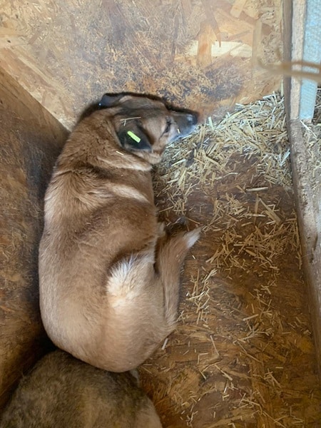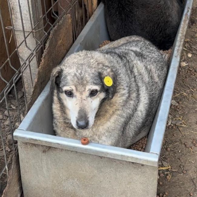 KITARO lag bei unserem Besuch mit seinem Hundekumpel im Futtertrog. Solange wir einen gewissen Abstand einhielten, blieb er ruhig liegen. Kamen wir mit der Hand heran, um Leckerlie vor ihm hinzulegen, wandte er den Blick vermeidend ab. In all den Jahren konnte KITARO seine Skepsis uns Menschen gegenüber leider nicht ablegen. Ob er dies je können wird, werden wir erst herausfinden, wenn sich sehr erfahrene und geduldige Menschen dazu bereit erklären, ihm diese Chance zu geben. Mit viel Zeit, Ruhe, Einfühlungsvermögen sowie einem aufgeschlossenen Ersthund, der ihm als Stütze dienen kann, wäre es evtl. möglich, dem verträglichen KITARO wenigstens noch ein paar schöne Jahre auf der Sonnenseite zu bescheren. Und diese Hoffnung geben wir nicht auf.