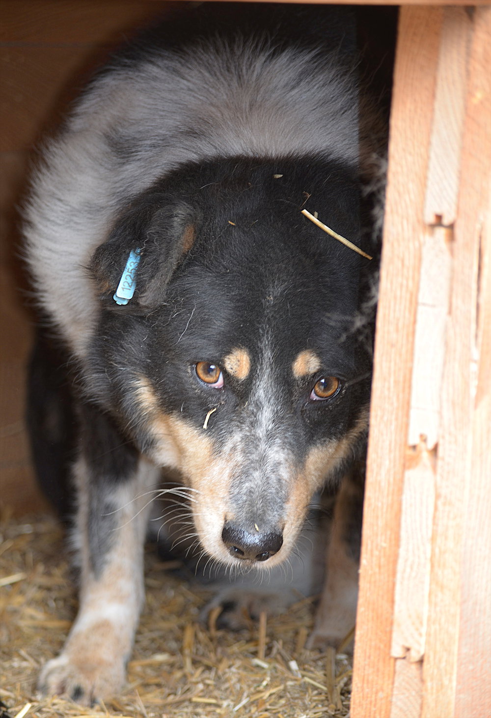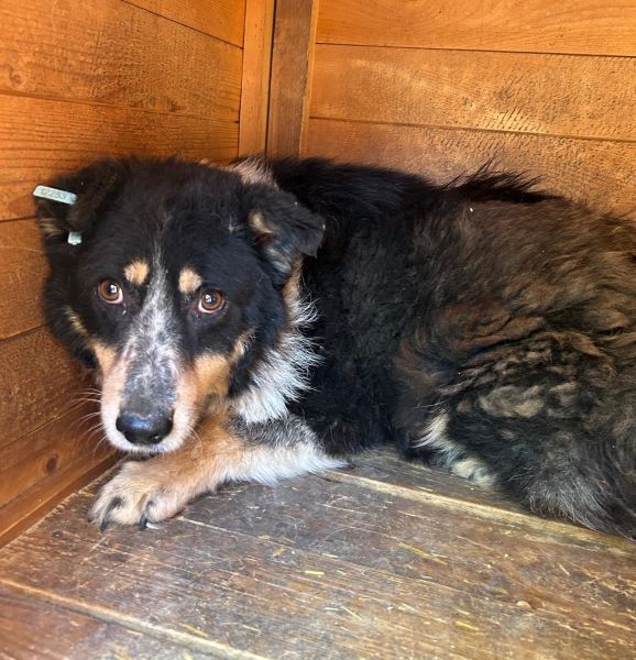 Wie bereits im Mai 2024 begegnete KITTY uns wieder freundlich und zurückhaltend. Wenn wir uns ihr näherten, wich sie aus. Allerdings konnten wir sie auch diesmal wieder unter Versperrung des Fluchtweges in der Hütte gut streicheln. Kitty ist eine ganz bezaubernde und hübsche Hündin, die nun endlich von ihren Menschen gesehen werden möchte.