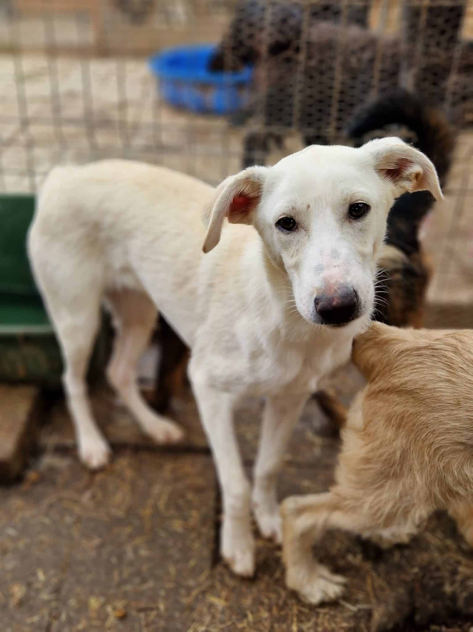 KIWI ist eine sehr junge Hündin, die zwar neugierig und interessiert an uns war, der aber der Mut fehlte, von sich aus Kontakt zu uns aufzunehmen. Als wir uns dann mit ihr beschäftigten, taute sie sehr schnell auf und ließ sich gut von uns streicheln. Sie wirkte sichtlich erleichtert, dass wir es gut meinen, und konnte unsere Zuwendungen dann auch genießen. KIWI ist sehr zart mit kurzem Fell, sie wird sicher sehr frieren, wenn der Winter kommt. Hoffentlich findet die liebe Hündin einen Platz, sie wird sicher schnell auftauen, wenn sie sich in Sicherheit fühlt.