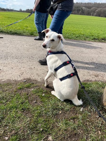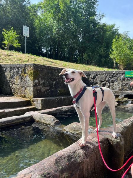 Sie freut sich beim Spazierengehen über Hundebegegnungen und möchte am liebsten mit allen spielen. Mit einer anderen Pflegehündin, die mittlerweile vermittelt ist, schlief Kiwi zusammen im Körbchen, war mit ihr eng verbunden und tobte und rangelte ansonsten stundenlang mit ihr rum. Ein freundlicher Zweithund in ihrem neuen Zuhause wäre sicherlich schön für sie!