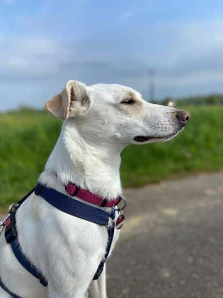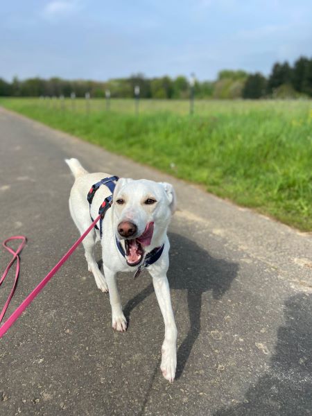 Dieses durchtrainierte, athletische und bewegungsfreudige Kraftpaket rennt mit Riesensprüngen den anderen Hunden davon und hat dabei endlos Energie. Spazierengehen findet sie toll, es gibt ja so viel zu sehen und zu erschnuppern! Es dürfen auch gern mal längere Wanderungen sein – Kiwi ist mit Begeisterung dabei!