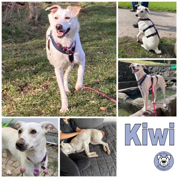 Kiwi, die Schöne. Zart, langbeinig und grazil geht das Hundemädchen durch ihr neues Leben und obwohl sie kaum etwas von der Welt kennt, überwiegt Neugierde und Offenheit bei ihrem Verhalten. Sie ist zu Beginn etwas schüchtern, das legt sich aber bald, da sie Menschen liebt und sich über jede Bekuschelung freut.