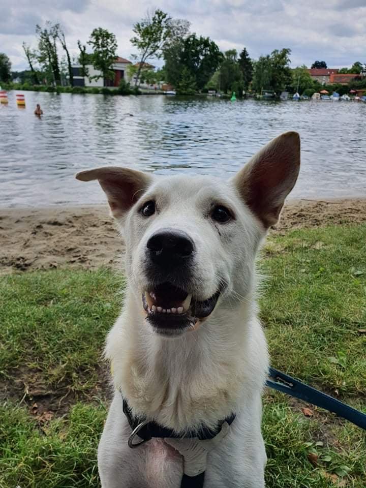 Ein von Geburt an blinder Hund, wunderschön, groß, klug, selbstbewusst, dann wieder ängstlich, absolut verträglich mit allen Hunden und er liebt Menschen!